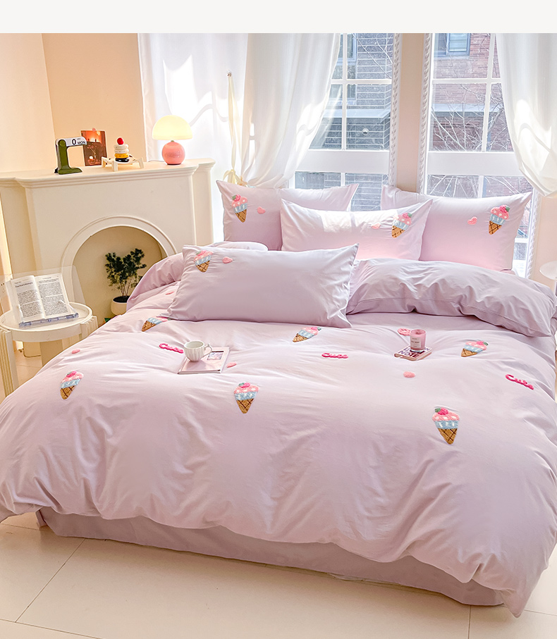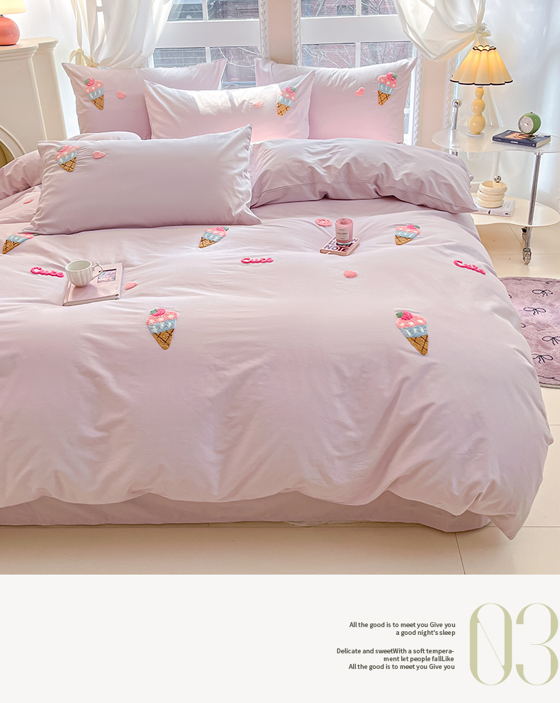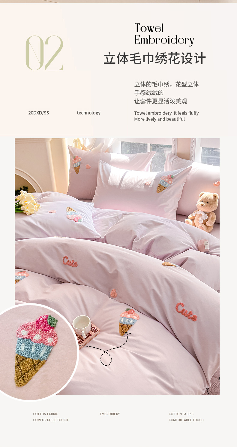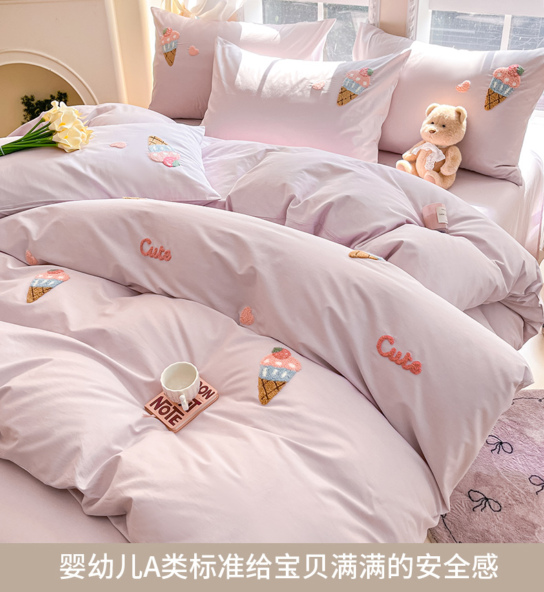 当前位置: 91家纺网 > 商品网购 > 床品套件 > 四件套 > 泽西家纺+V17798841158发大图 2025新品40支全棉纯棉13376成人卡通毛巾绣纯棉四件套冰淇淋系列 冰淇淋-紫