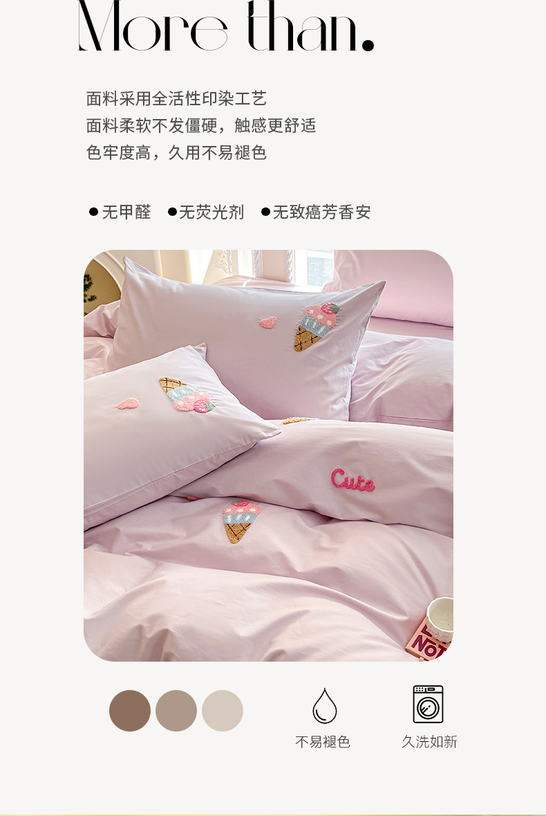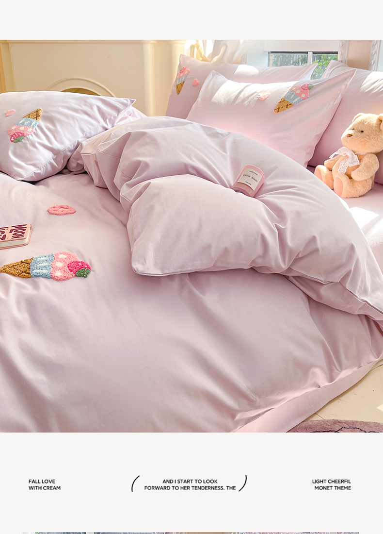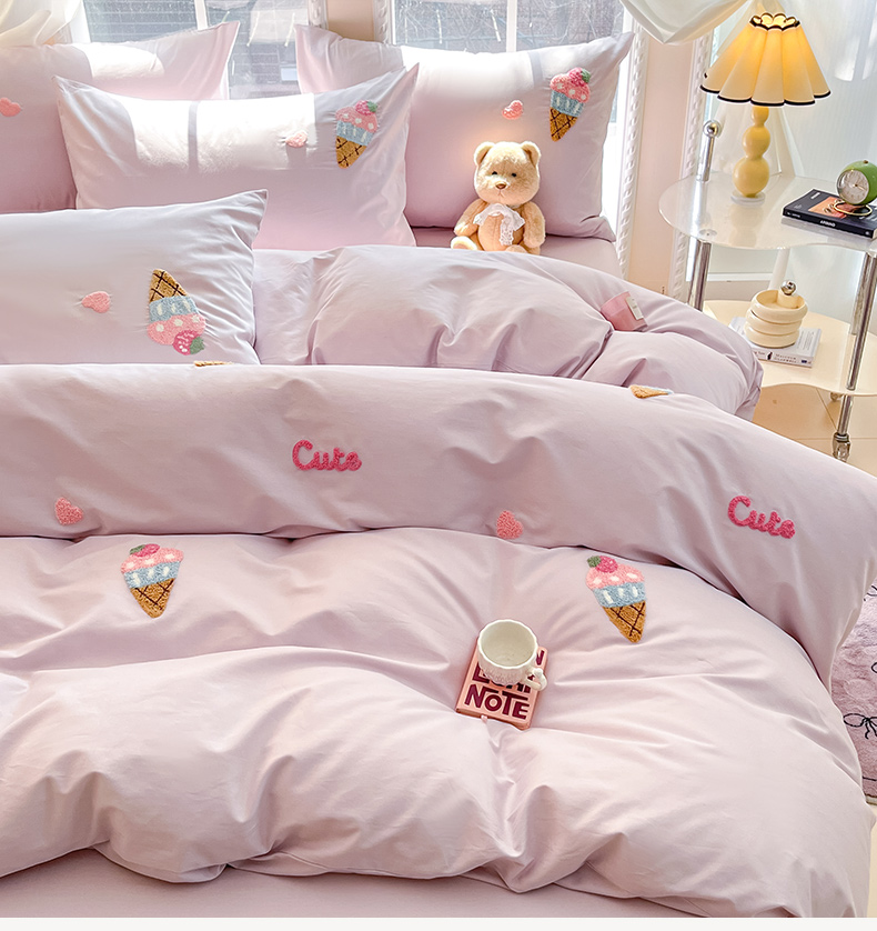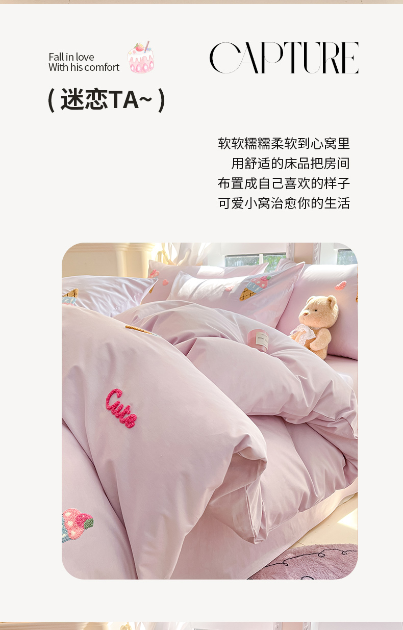 当前位置: 91家纺网 > 商品网购 > 床品套件 > 四件套 > 泽西家纺+V17798841158发大图 2025新品40支全棉纯棉13376成人卡通毛巾绣纯棉四件套冰淇淋系列 冰淇淋-紫