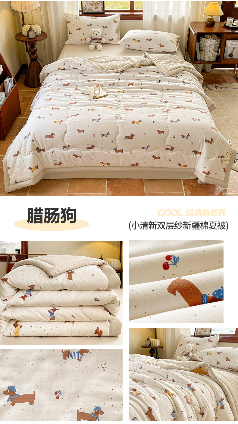 商品名称:易博 2025新款100% 棉花小清新双层纱新疆棉夏被夏凉被空调被棉花被(带买家秀) 腊肠狗