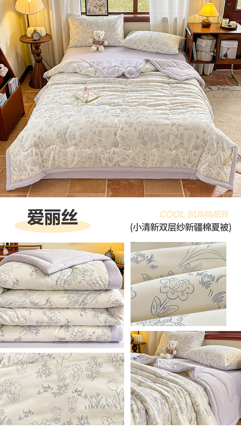 (总)易博 2025新款100% 棉花小清新双层纱新疆棉夏被夏凉被空调被棉花被(带买家秀),爱丽丝,蝶舞,动物世界,好丽友,花趣,花园兔,可爱萌宠 卡其,可爱萌宠 绿,腊肠狗,曼塔玫瑰,绵绵南瓜,木马奇缘,山茶物语,田园牧歌,熊博士,组合图仅做展示