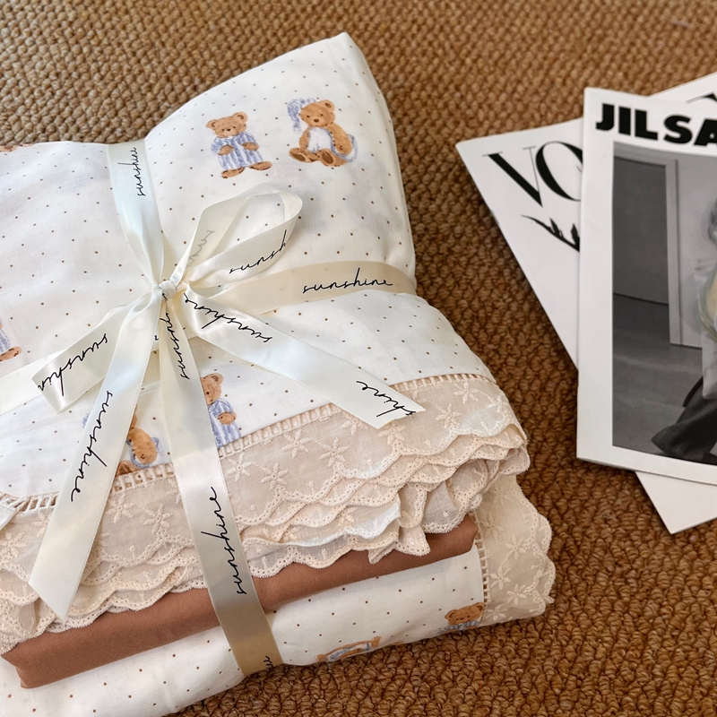 荣轩家居 2025新款全棉双层纱镂空花边工艺款四件套蜜芽-熊