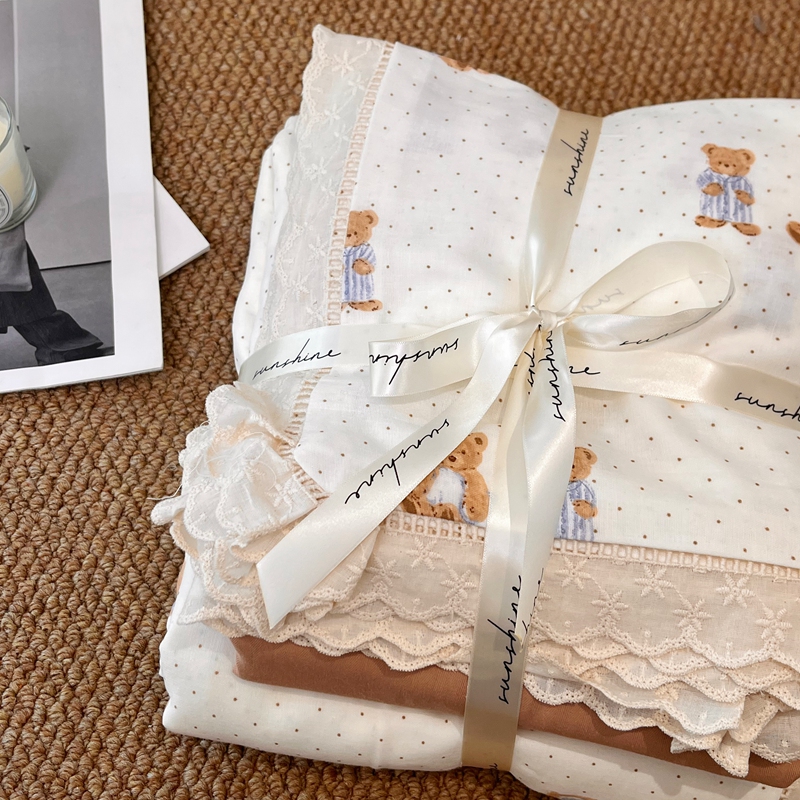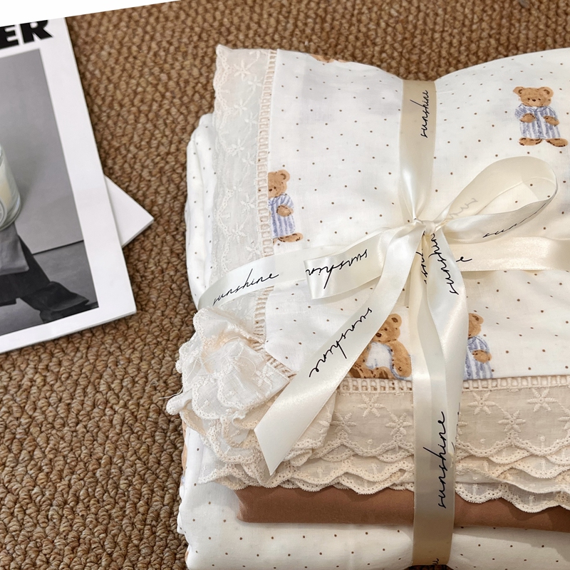 商品名称:荣轩家居 2025新款全棉双层纱镂空花边工艺款四件套蜜芽-熊