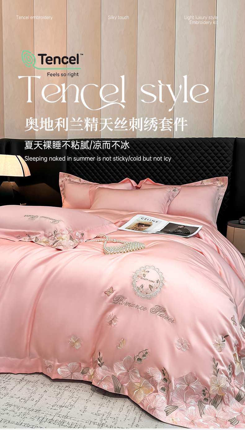 商品名称:家居1号家纺 2025新款LF级奥地利兰精天丝四件套倾城之恋系列 倾城之恋-荷粉