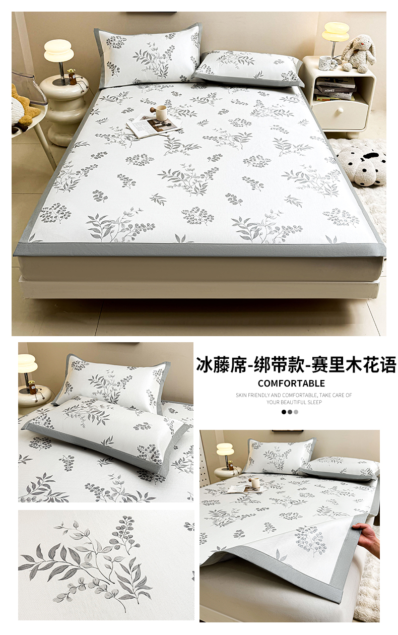当前位置: 91家纺网 > 商品网购 > 床上用品 > 凉席 > 凉席套件 > 雯豆2025夏季新品冰藤印花凉席三件套平铺绑带款冰丝凉席三件套 冰藤席-绑带款-赛里木花语