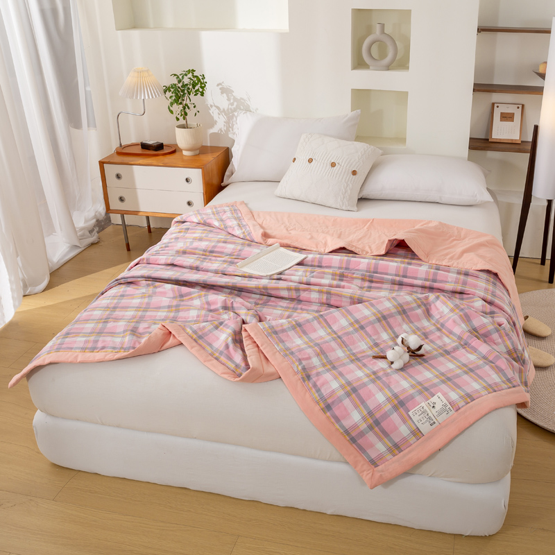 美梦之都2025新款A类色织水洗棉夏被新疆棉花被空调被夏凉被被子被芯 简兮-粉