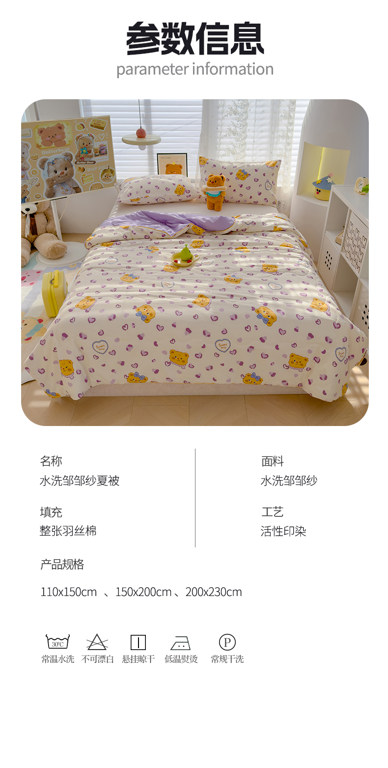 商品名称:贝扬思 2025新款水洗皱皱纱系列夏被夏凉被空调被(风格一) 甜甜黄油熊