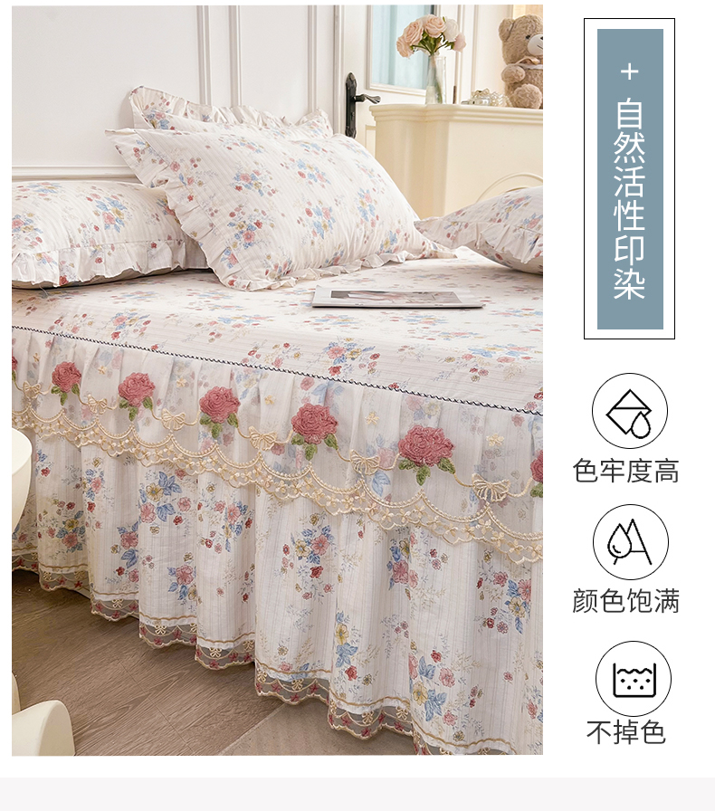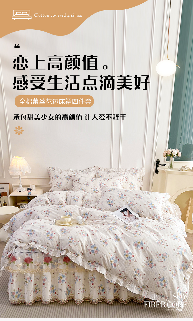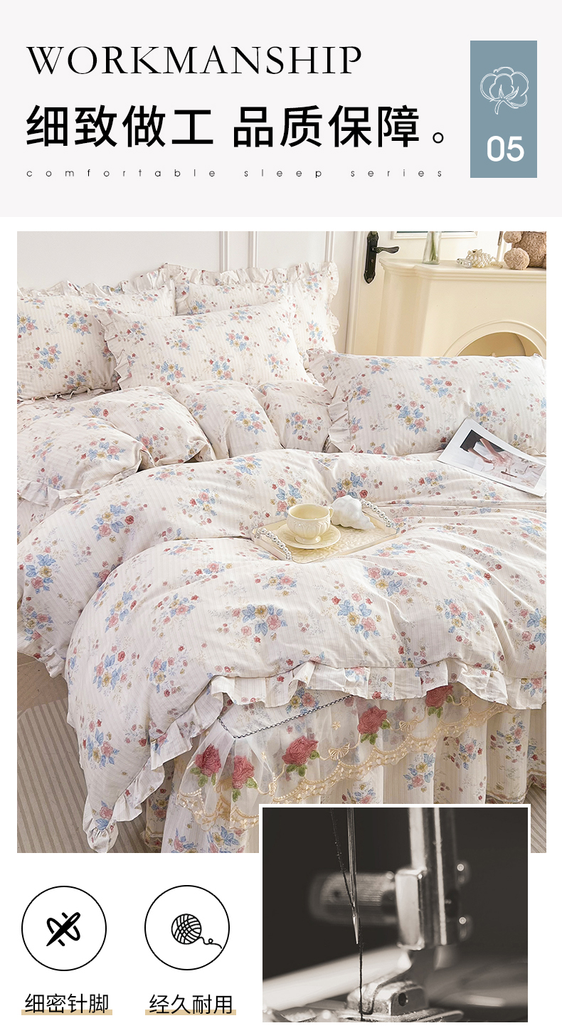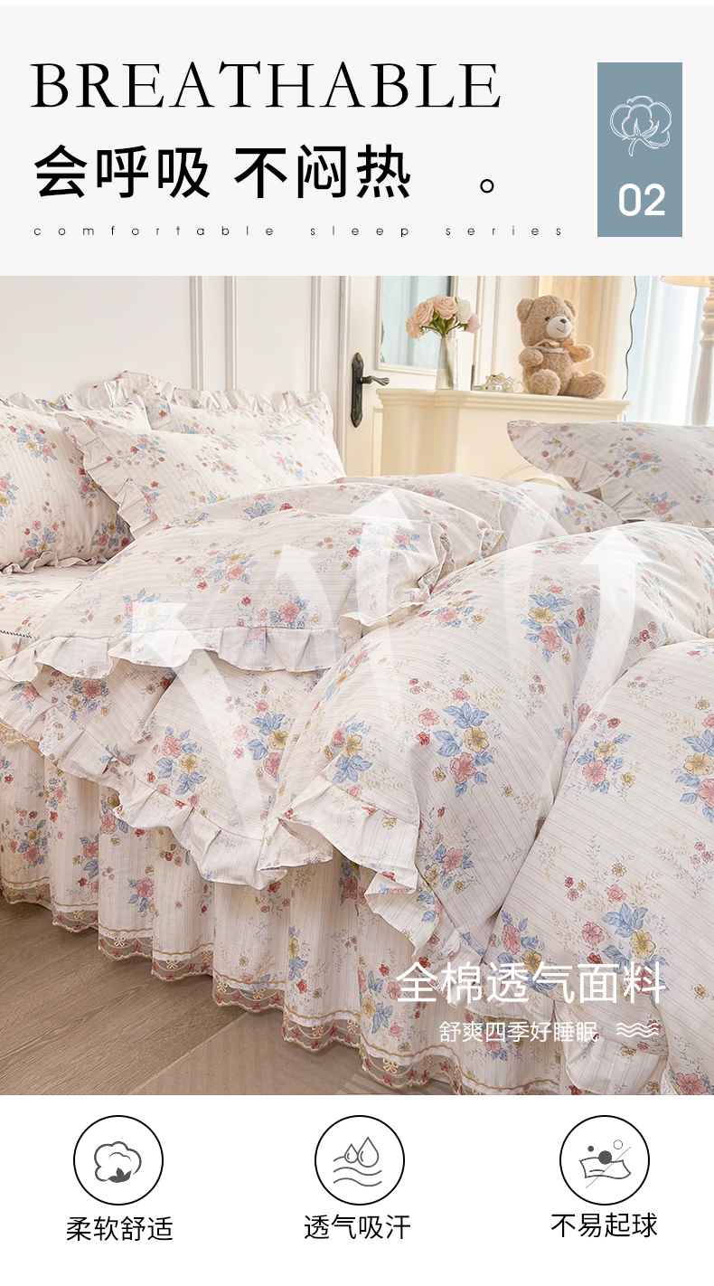当前位置: 91家纺网 > 商品网购 > 床品套件 > 四件套 > 全棉普通四件套 > 十个点 2025新款全棉纯棉蕾丝花边床裙四件套 淡雅如梦