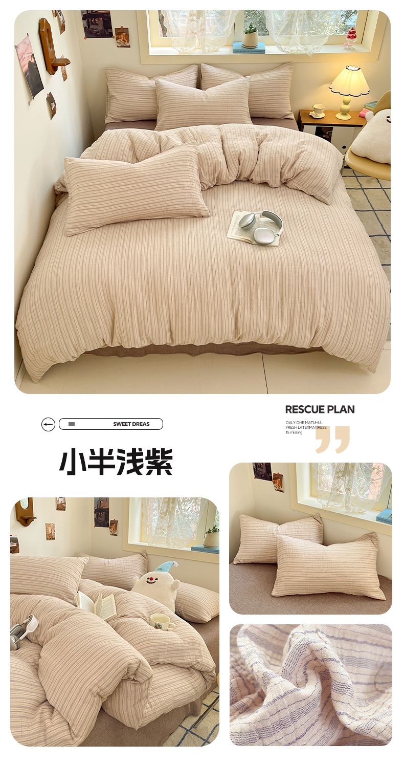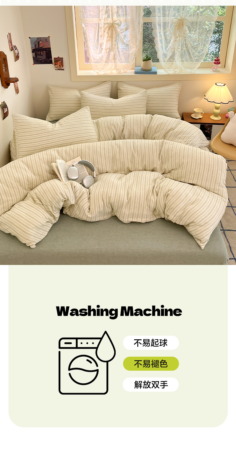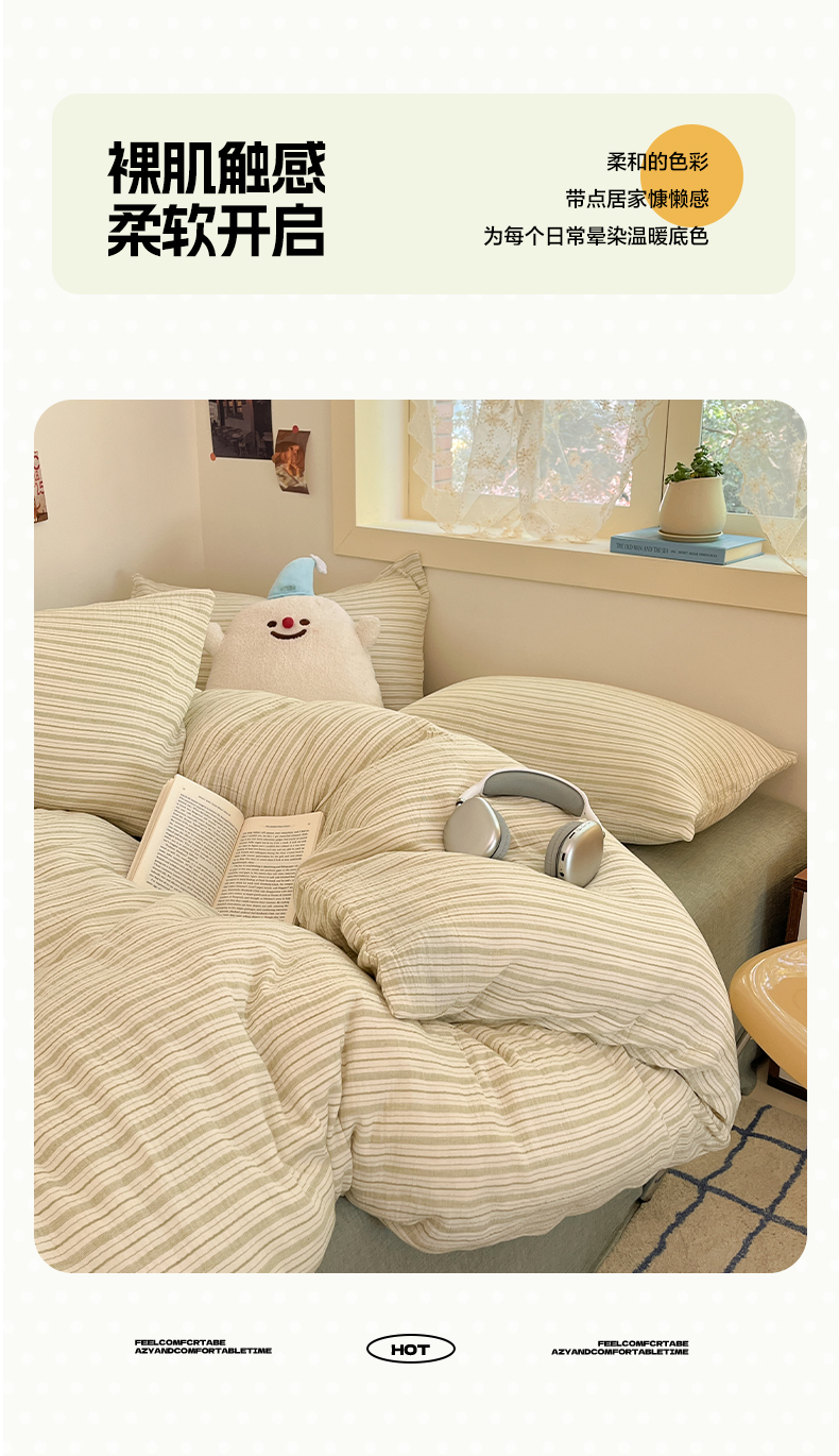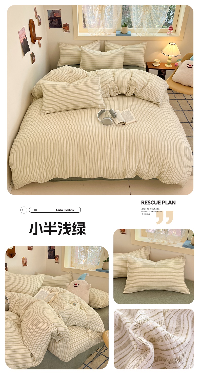 艾咪-Amy ntmy 2025新款条纹款全棉双层皱皱纱四件套 小半浅绿