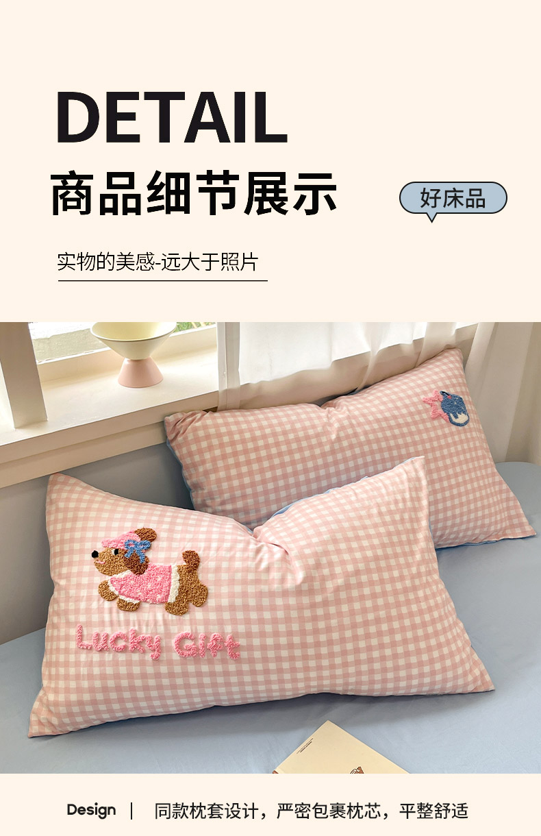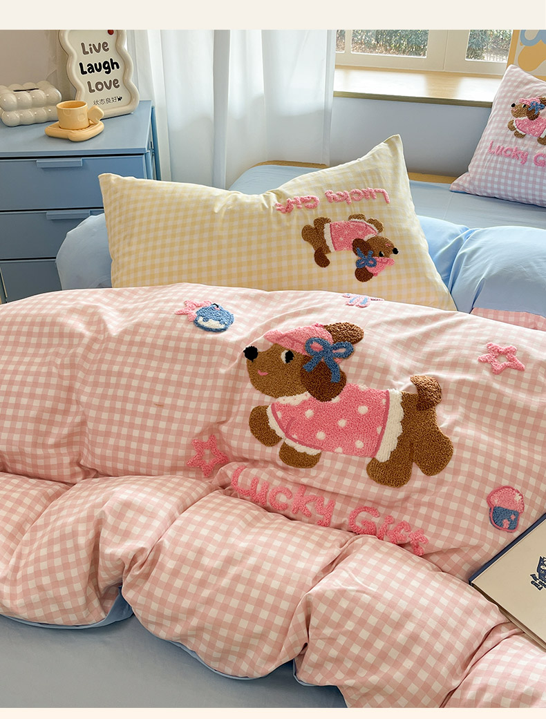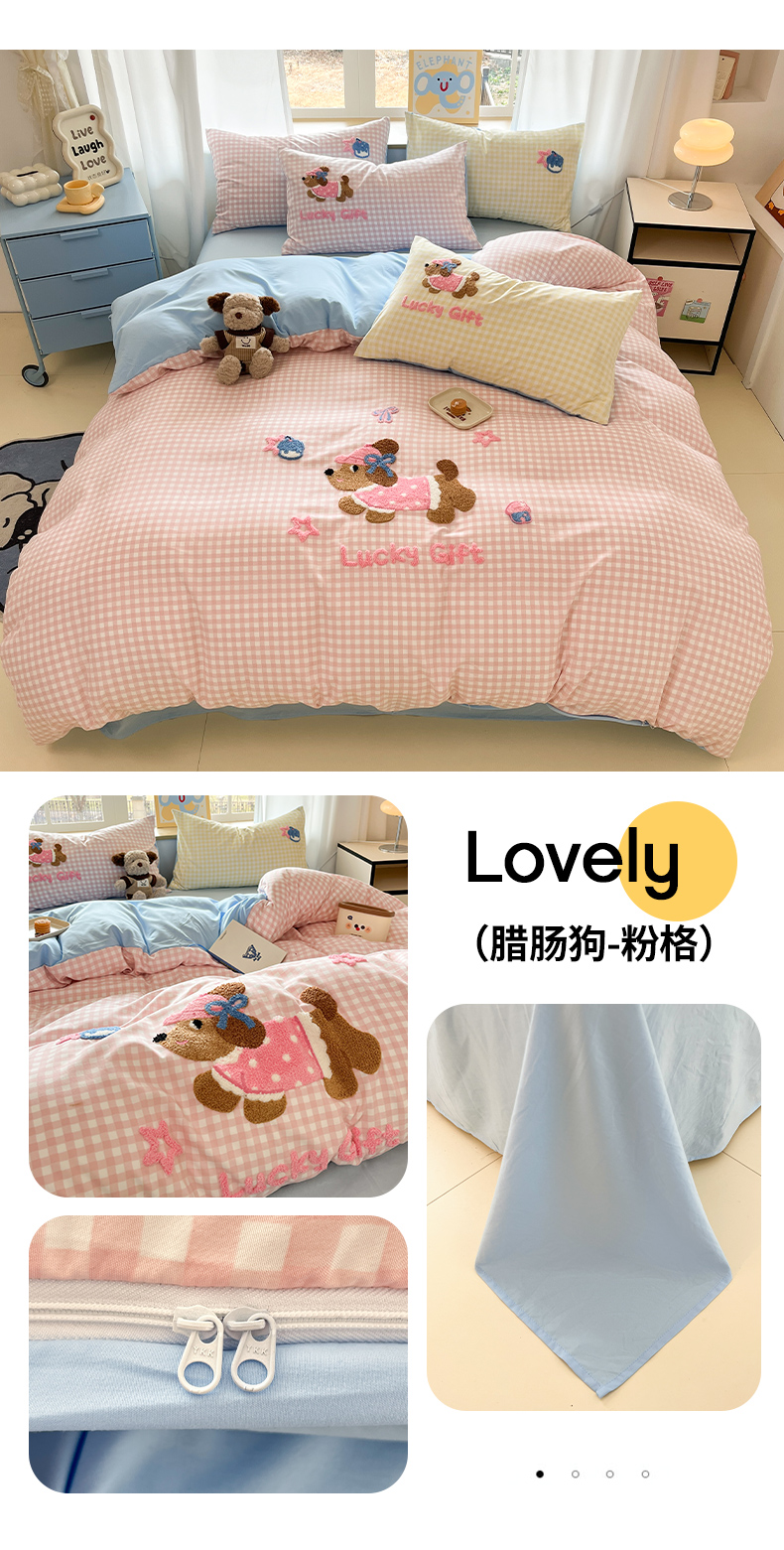 商品名称:乐坊2025新款云朵棉毛巾绣四件套 腊肠狗-粉格