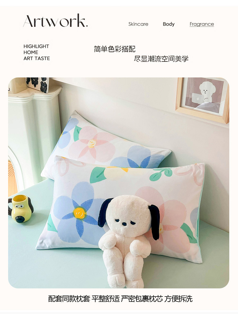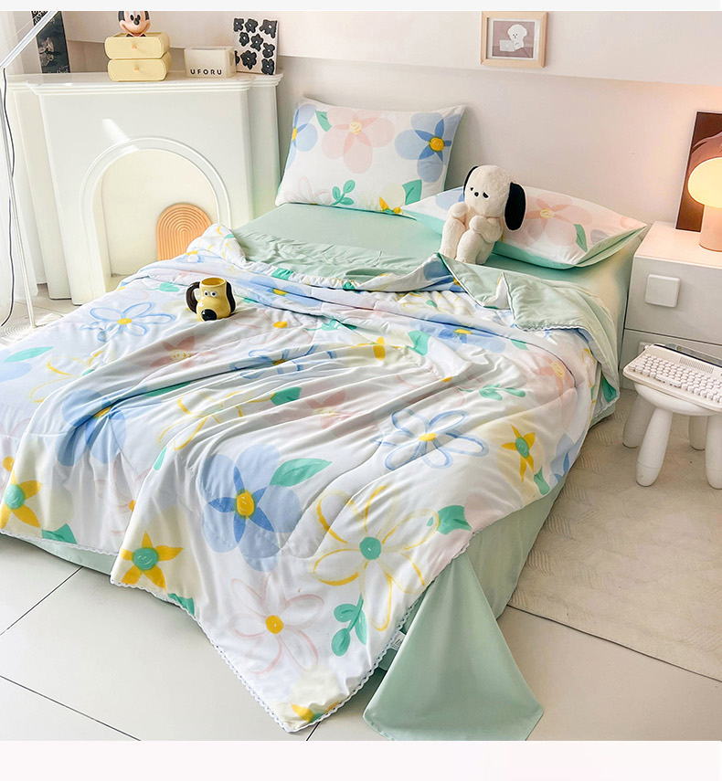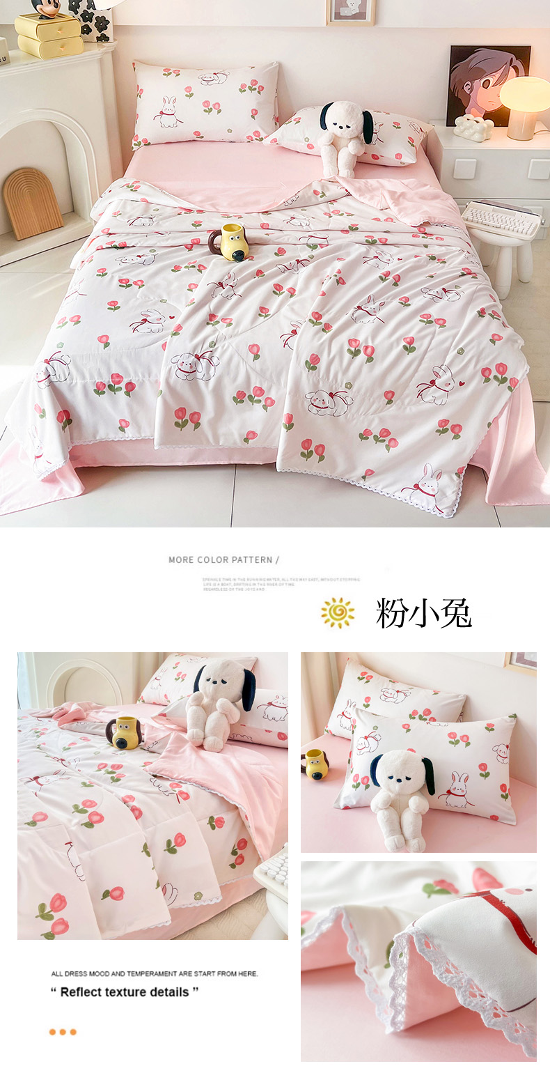 商品名称:倾慕家纺 2025新款A类小清新小花边水洗棉夏被系列 七彩花色