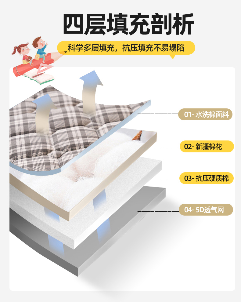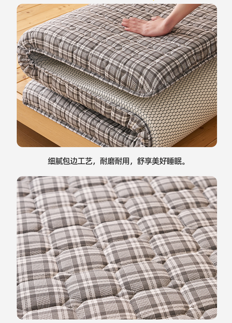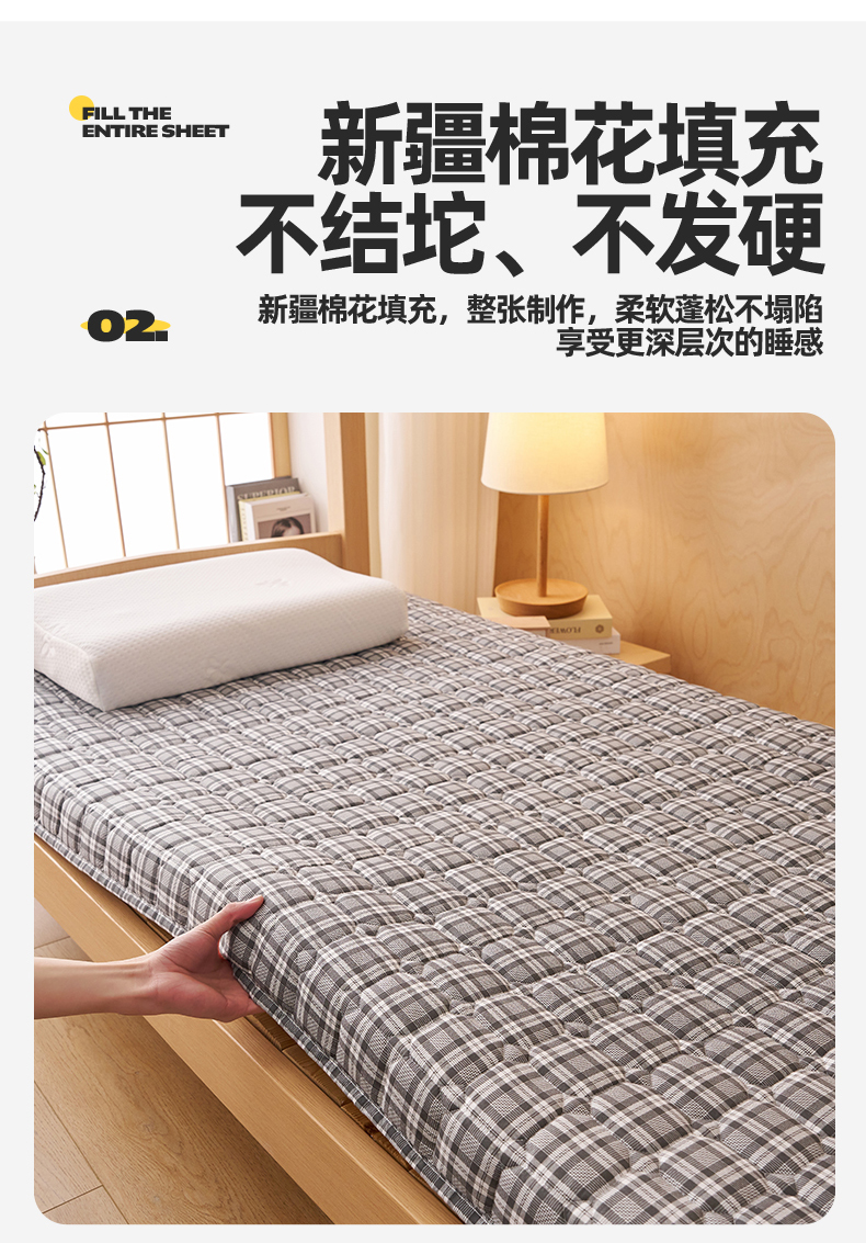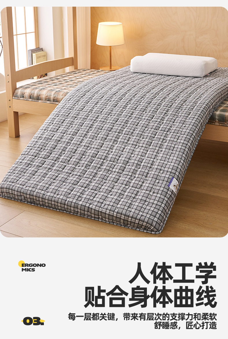 • 91家纺网 家纺一手货源 找家纺 艺博床垫 2025新款水洗棉棉花学生床垫 深灰格