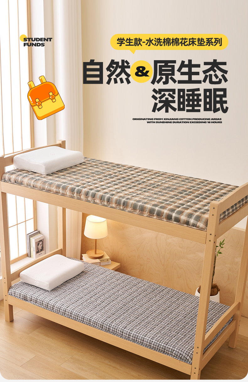 艺博床垫 2025新款水洗棉棉花学生床垫 深灰格