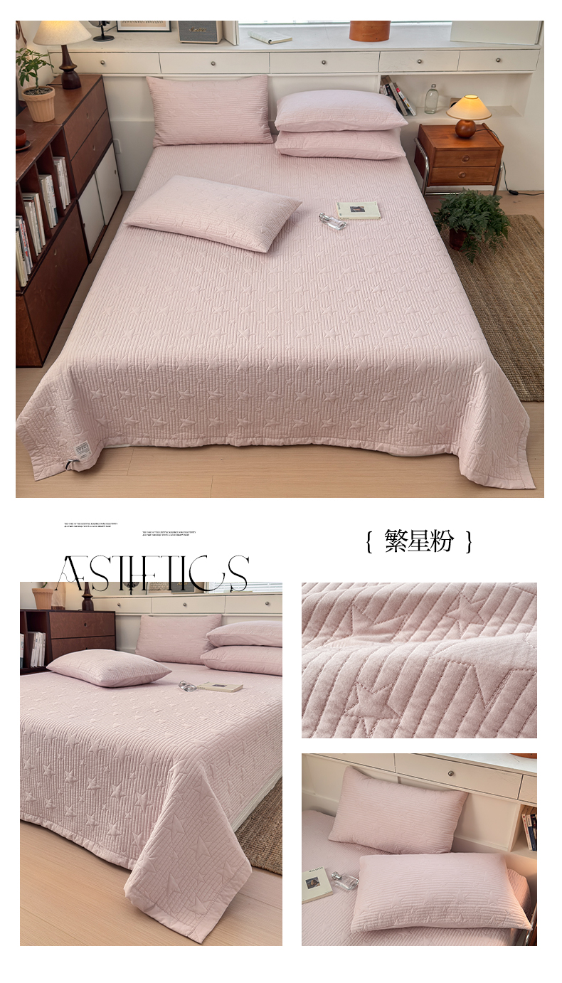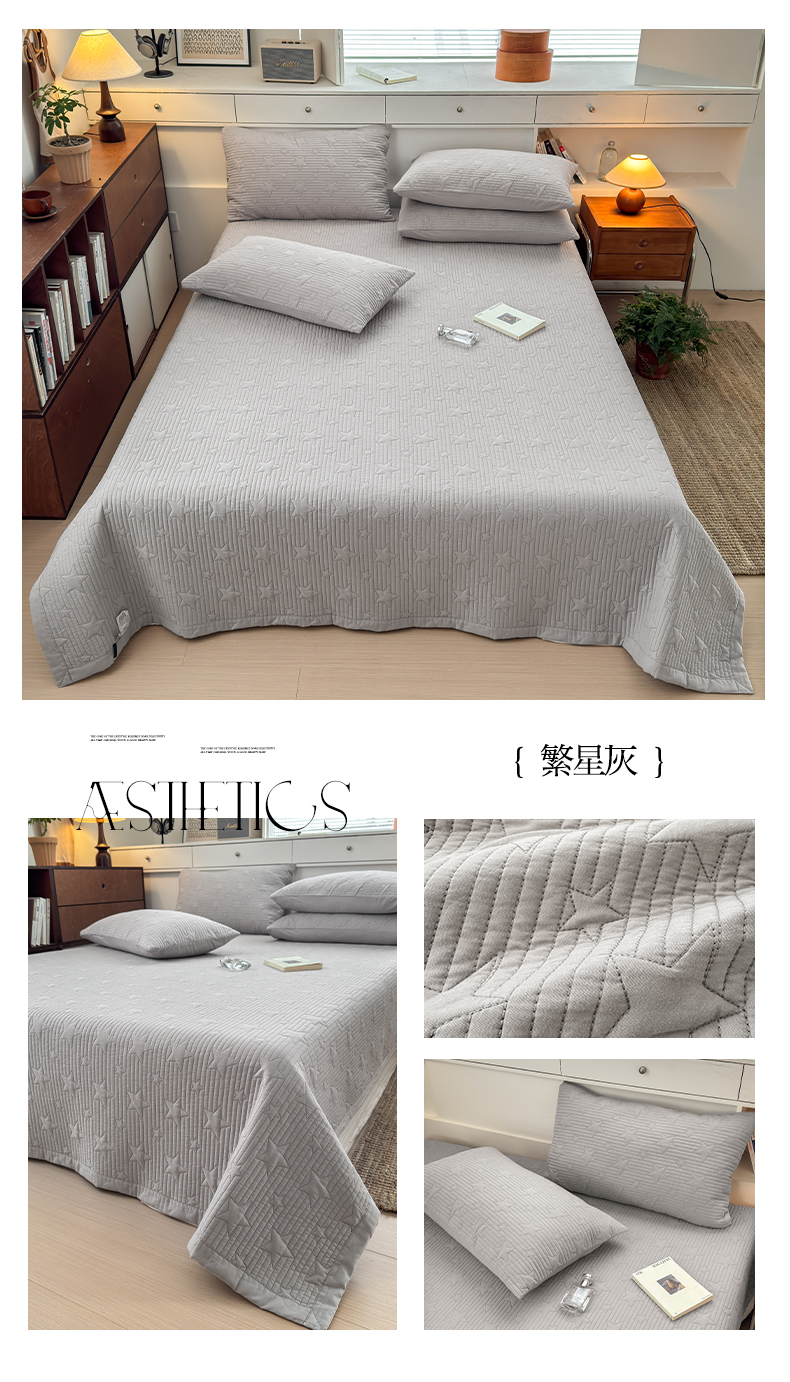 (总)漫调2025新款双面全棉砂洗水洗星星绗缝床盖三件套多功能夏被,组合图仅供参考,繁星白,繁星粉,繁星灰,繁星咖,繁星绿,繁星杏