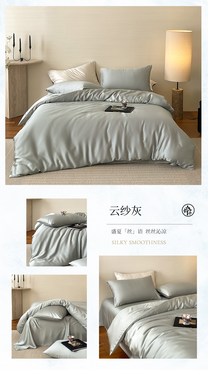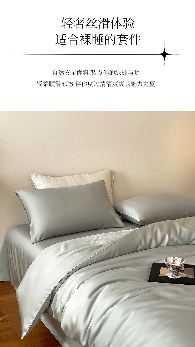 商品名称:启航家居 2025新款60s纯色兰精天丝四件套 云纱灰
