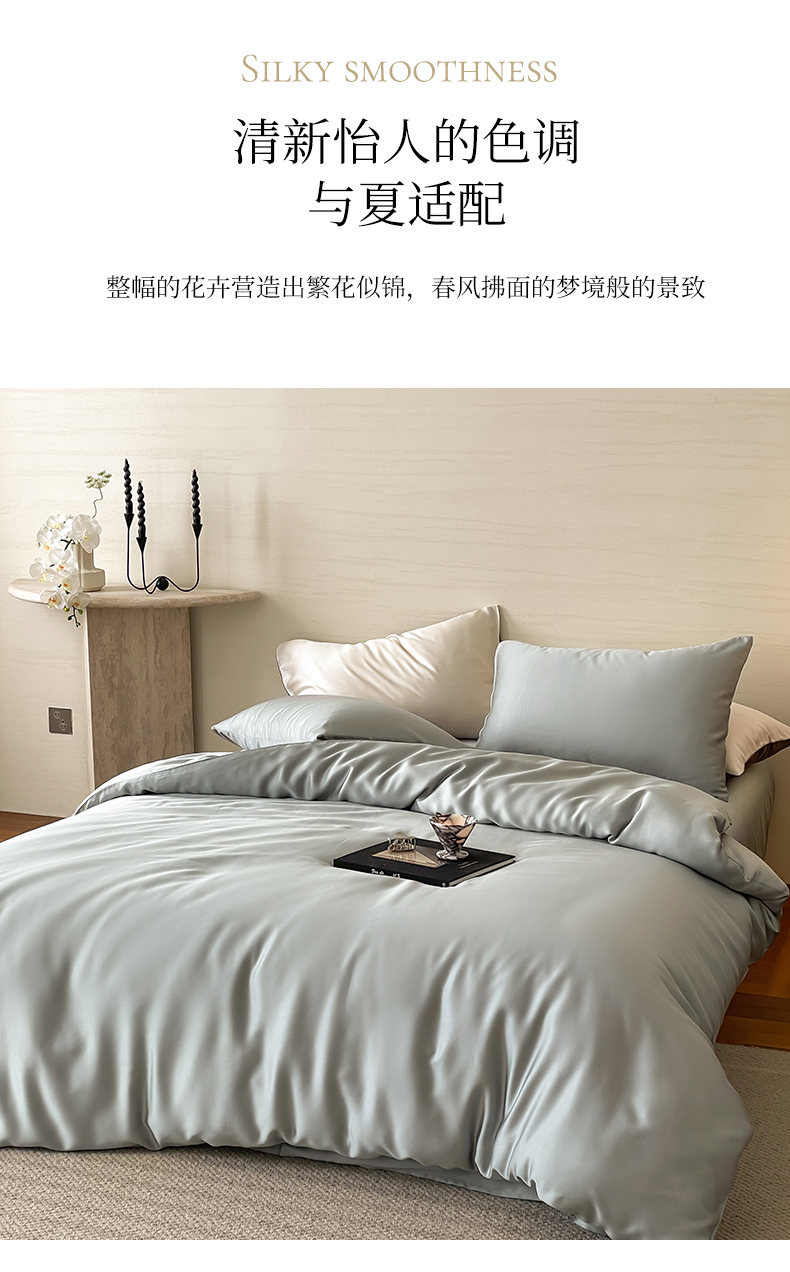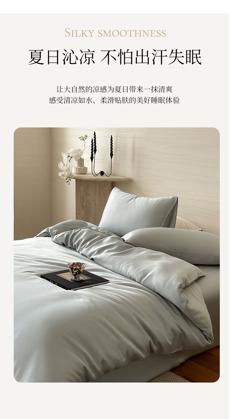 (总)启航家居 2025新款60s纯色兰精天丝四件套,灰蓝色-冰川灰,极地白,满天星紫-曙光银,欧芹绿,乳蛋白-冷岩灰,天空蓝-浅艾绿,烟轻绿,夜影凝香-霜华银,映霜蓝-霜华银,云纱灰
