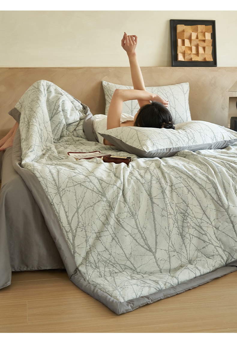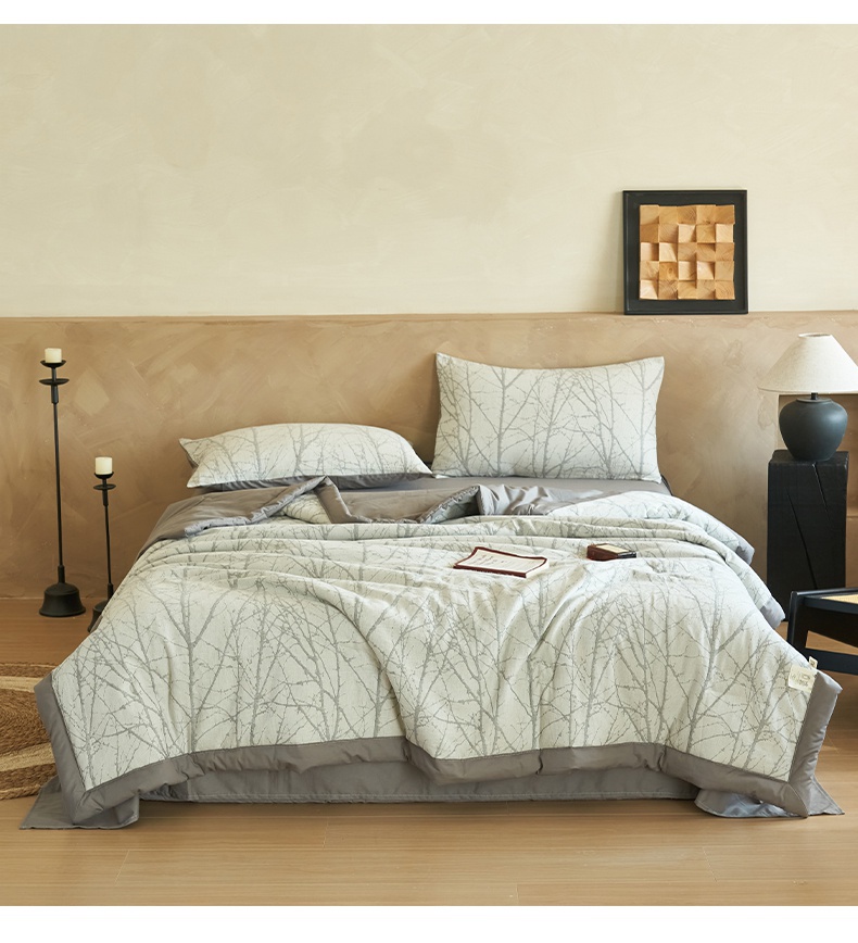 当前位置: 91家纺网 > 商品网购 > 床品套件 > 四件套 > 夏被四件套 > 2025新款全棉水洗棉三层提花大豆夏被四件套 提花-树林灰