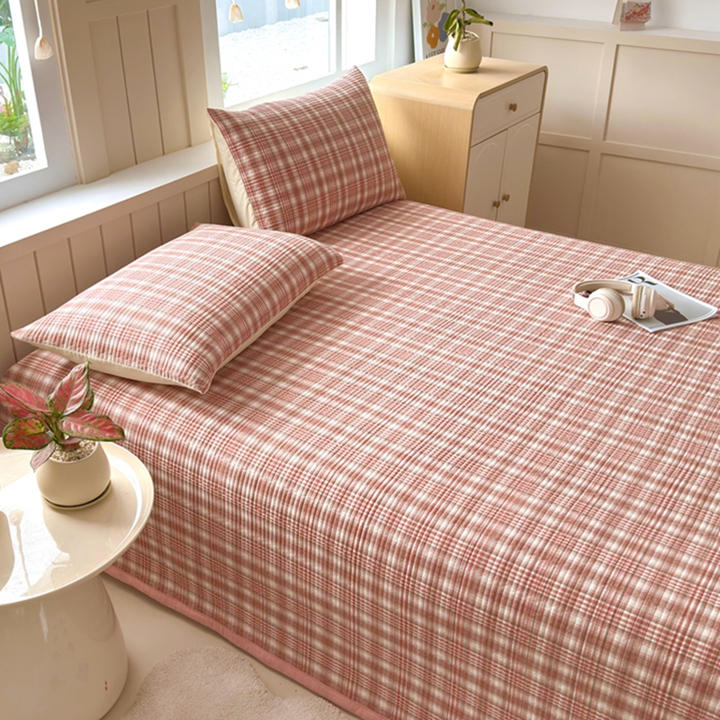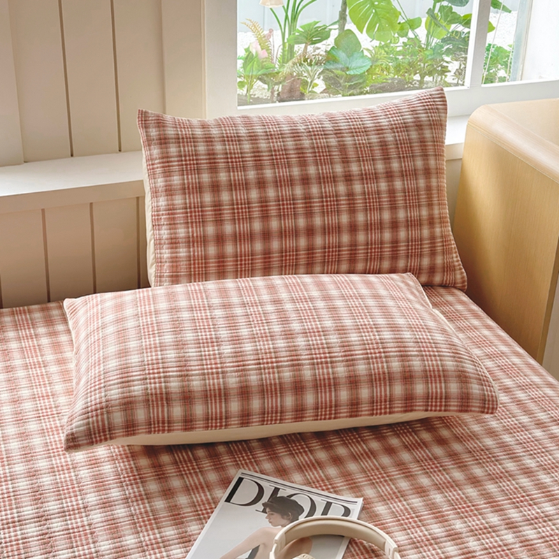 梦精灵家纺 2025新款全棉纯棉色织水洗棉床盖四件套加大尺寸单被套枕套 利奥-红