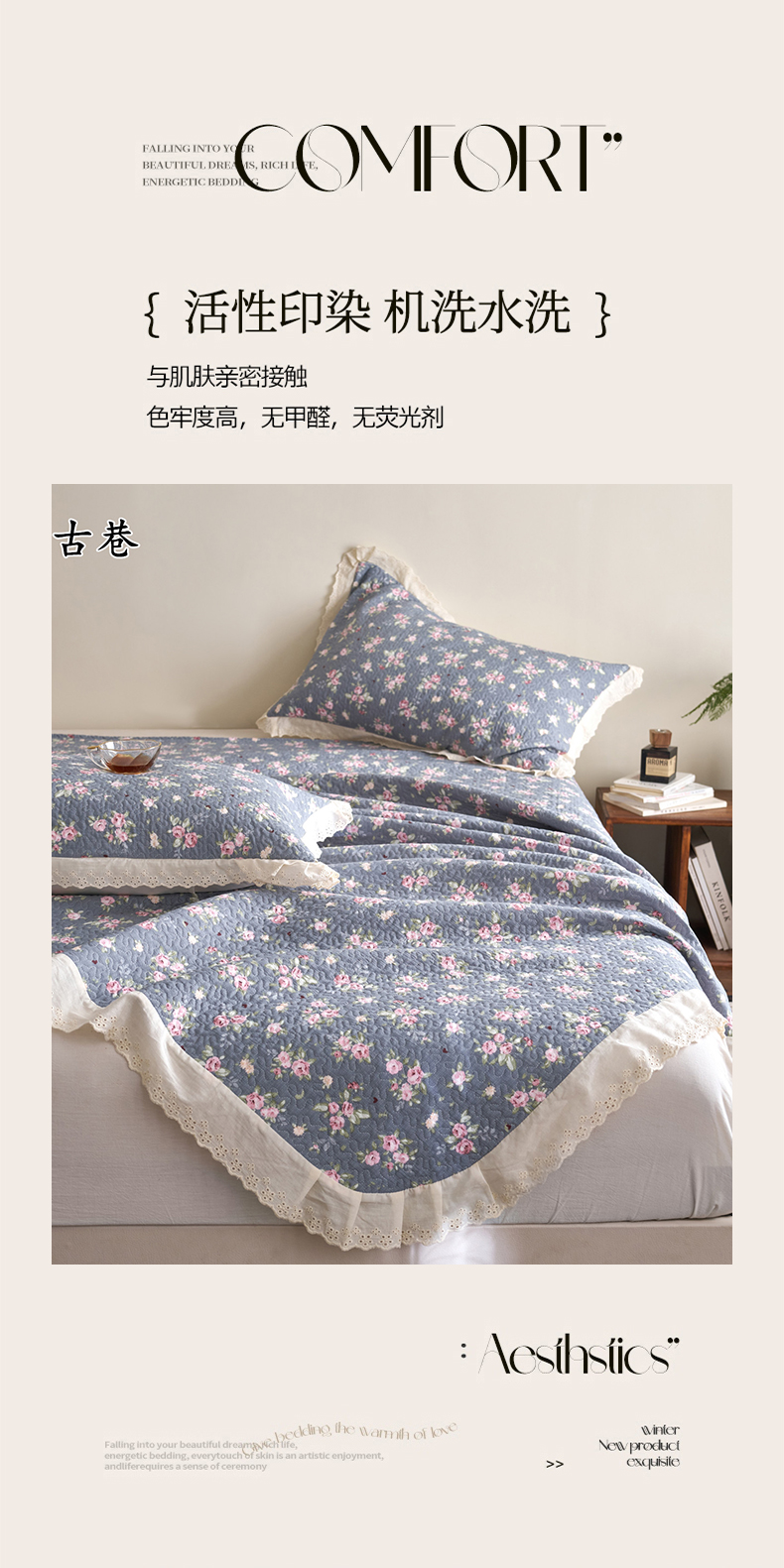 商品名称:漫仙阁家纺 2025新款热卖法式花边款加厚床盖床盖三件套 古巷