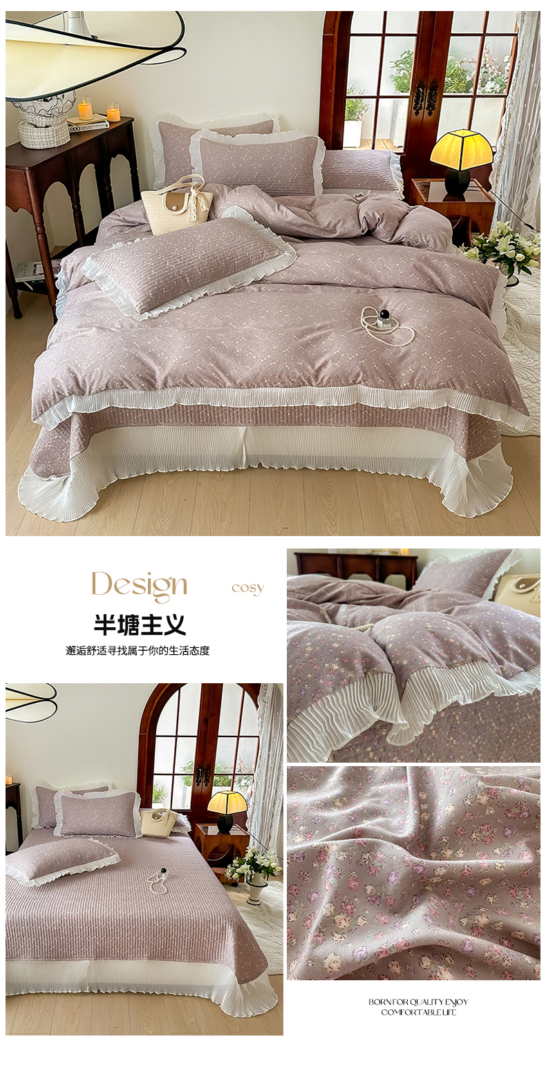 商品名称:赫本家纺 2025新款水洗棉花边款夹棉床盖三件套四件套 半塘主义