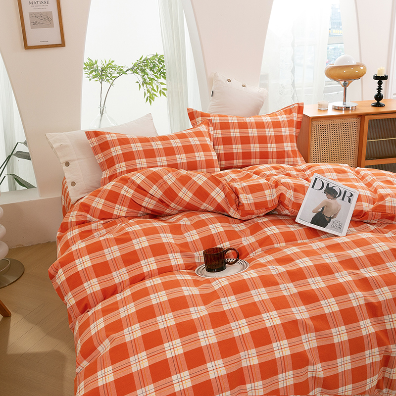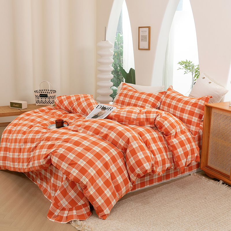 商品名称:喜四方 2025新款全棉色织水洗棉四件套 罗兰(桔)