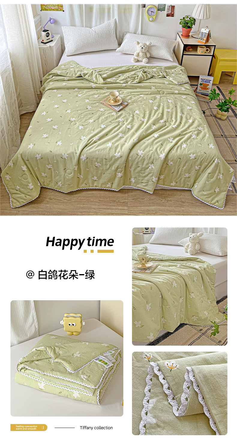 • 91家纺网 家纺一手货源 找家纺 心悦家纺 2025新款A类全棉纯棉优U棉提花夏被夏凉被空调被春秋被冬被 白鸽花朵-绿