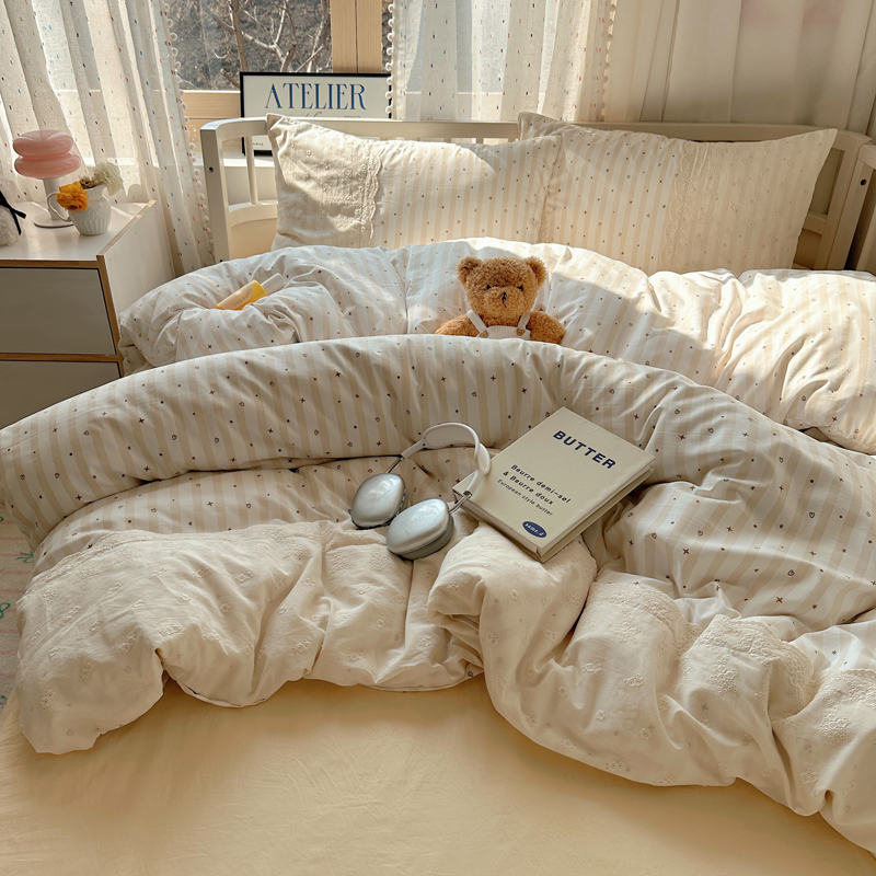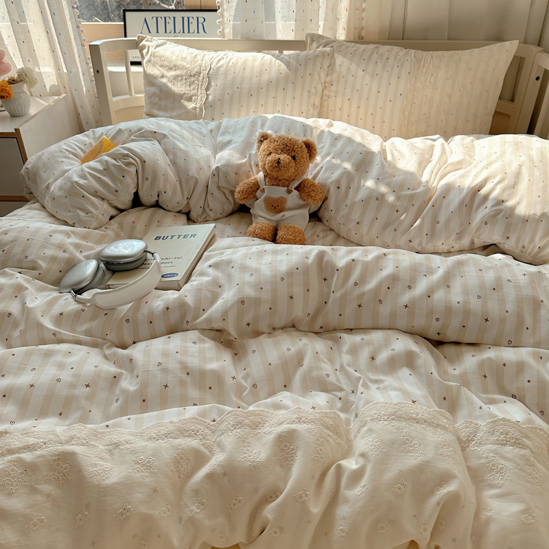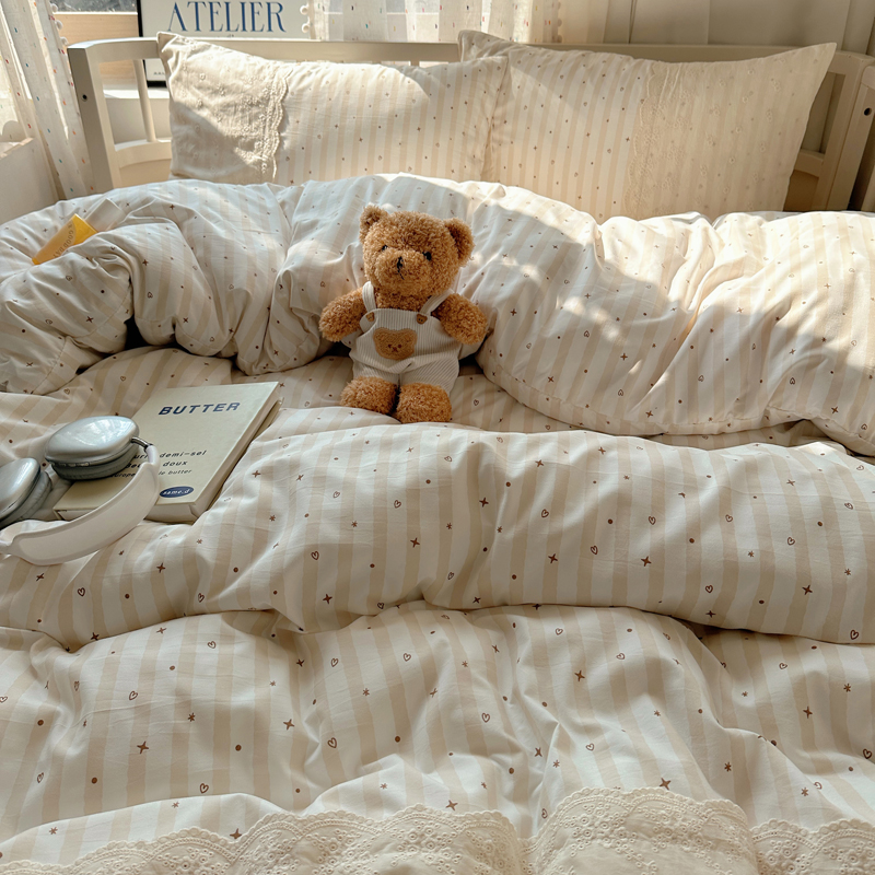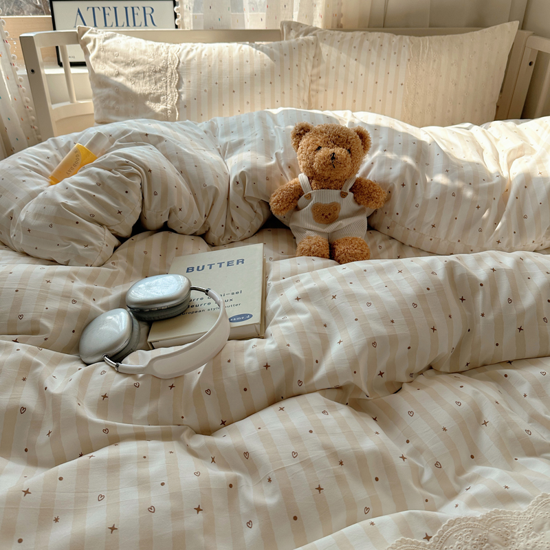 顾里家纺 2025新款简约小资系列云感双层纱四件套 条纹星星咖