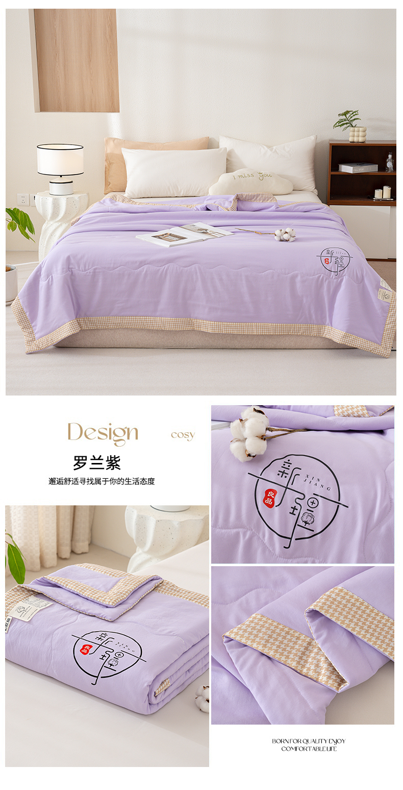 商品名称:芯恋 2025年新款无印风千鸟格水洗棉新疆棉花夏被 罗兰紫