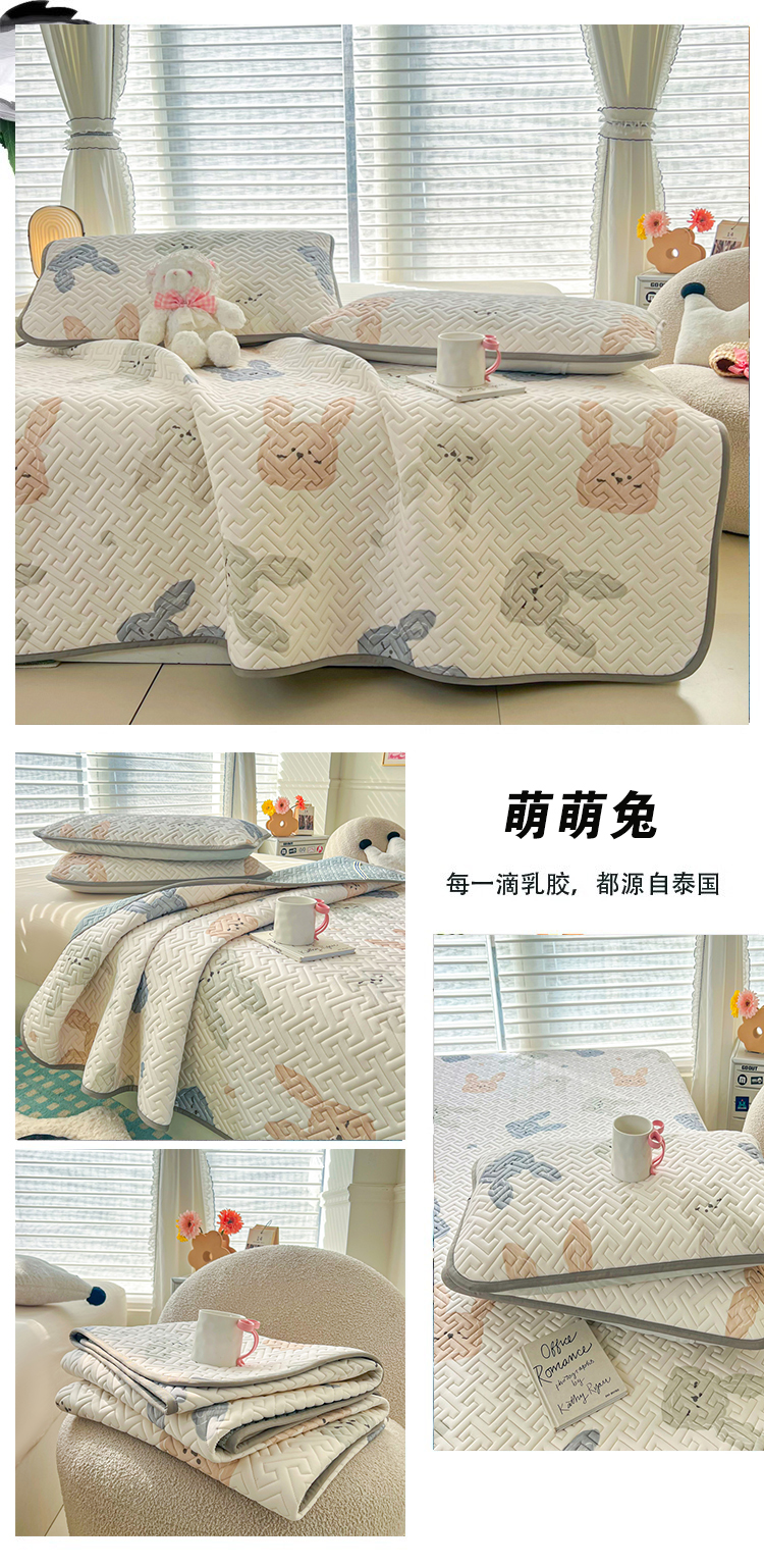商品名称:美丽折2025夏季新品高端加厚全冰丝生物基乳胶凉席三件套 水洗天然乳胶凉席 萌萌兔