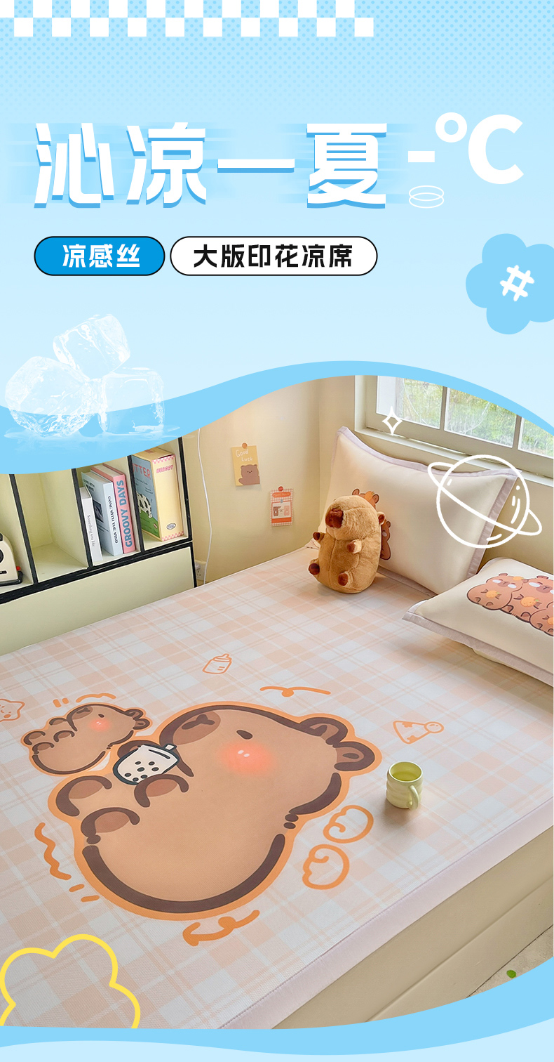 (总)博雅 2025新款独家版权A类大版数码印花1200D冰丝凉席