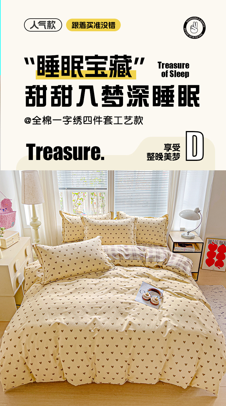 商品名称:(总)优选 2025新款直播新款100%全棉小清新印花四件套纯棉三件套(一字绣工艺款)学生三件套