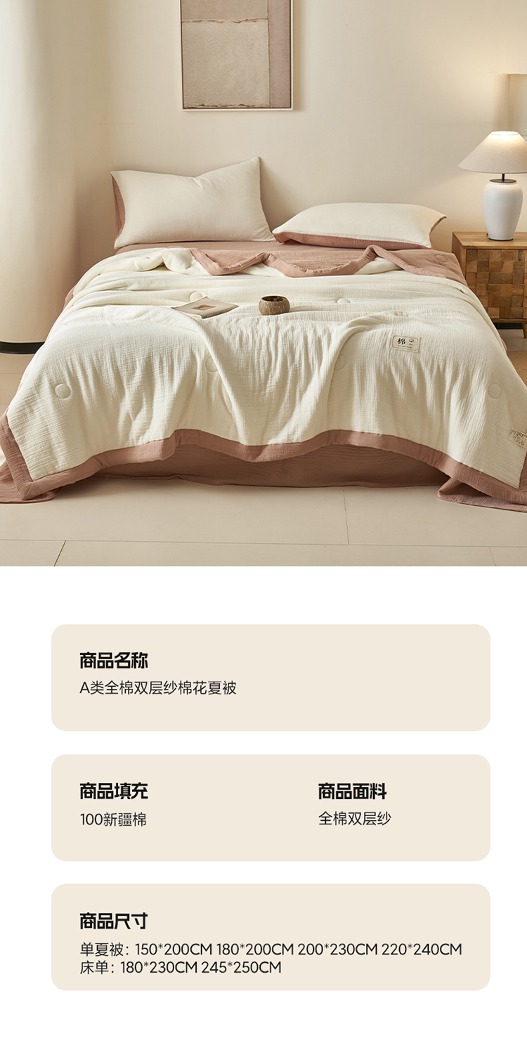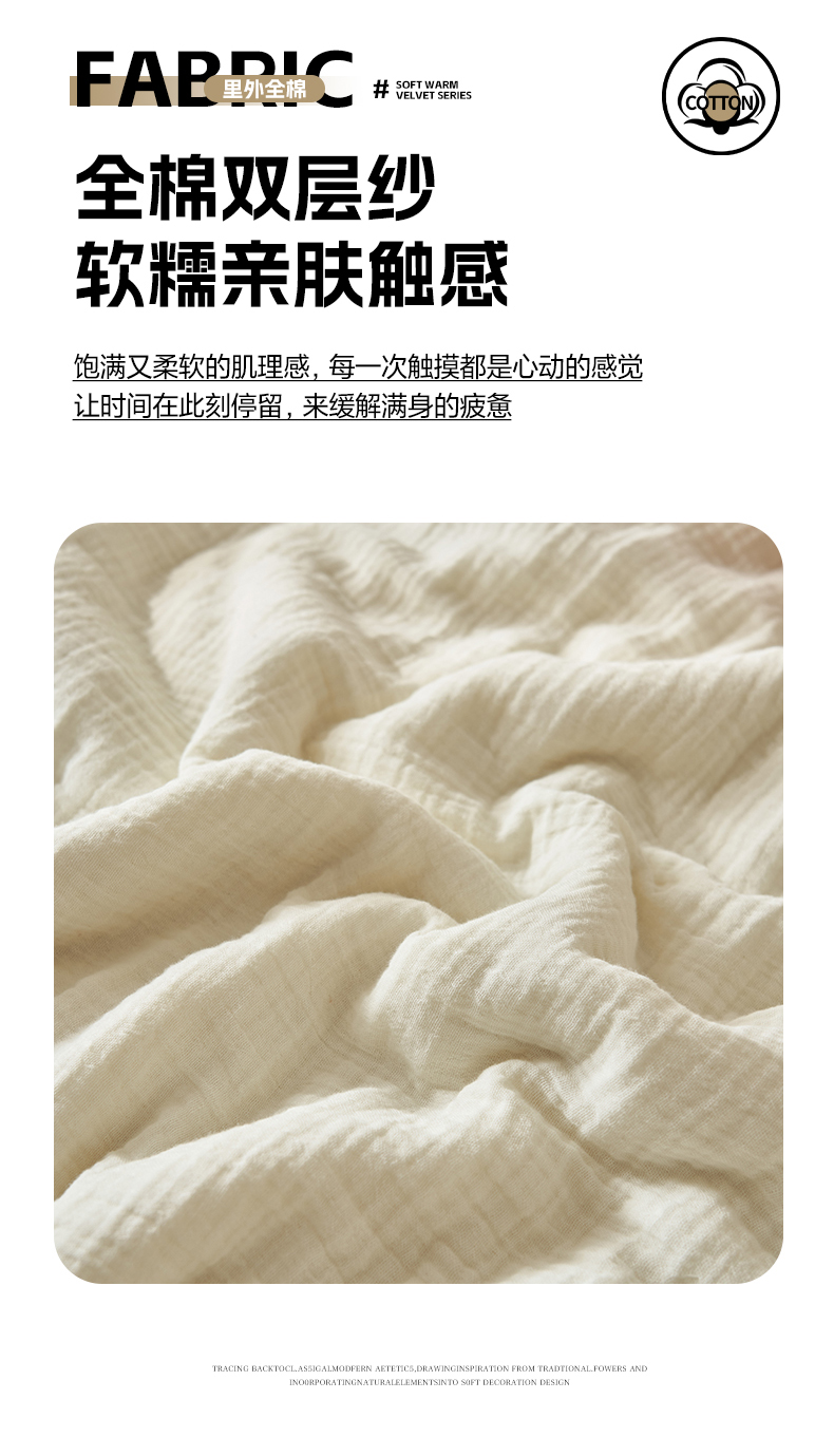 当前位置: 91家纺网 > 商品网购 > 床品套件 > 四件套 > 夏被四件套 > 简如 2025新款A类全棉双层纱皱皱纱夏被四件套-简系列 奶昔白