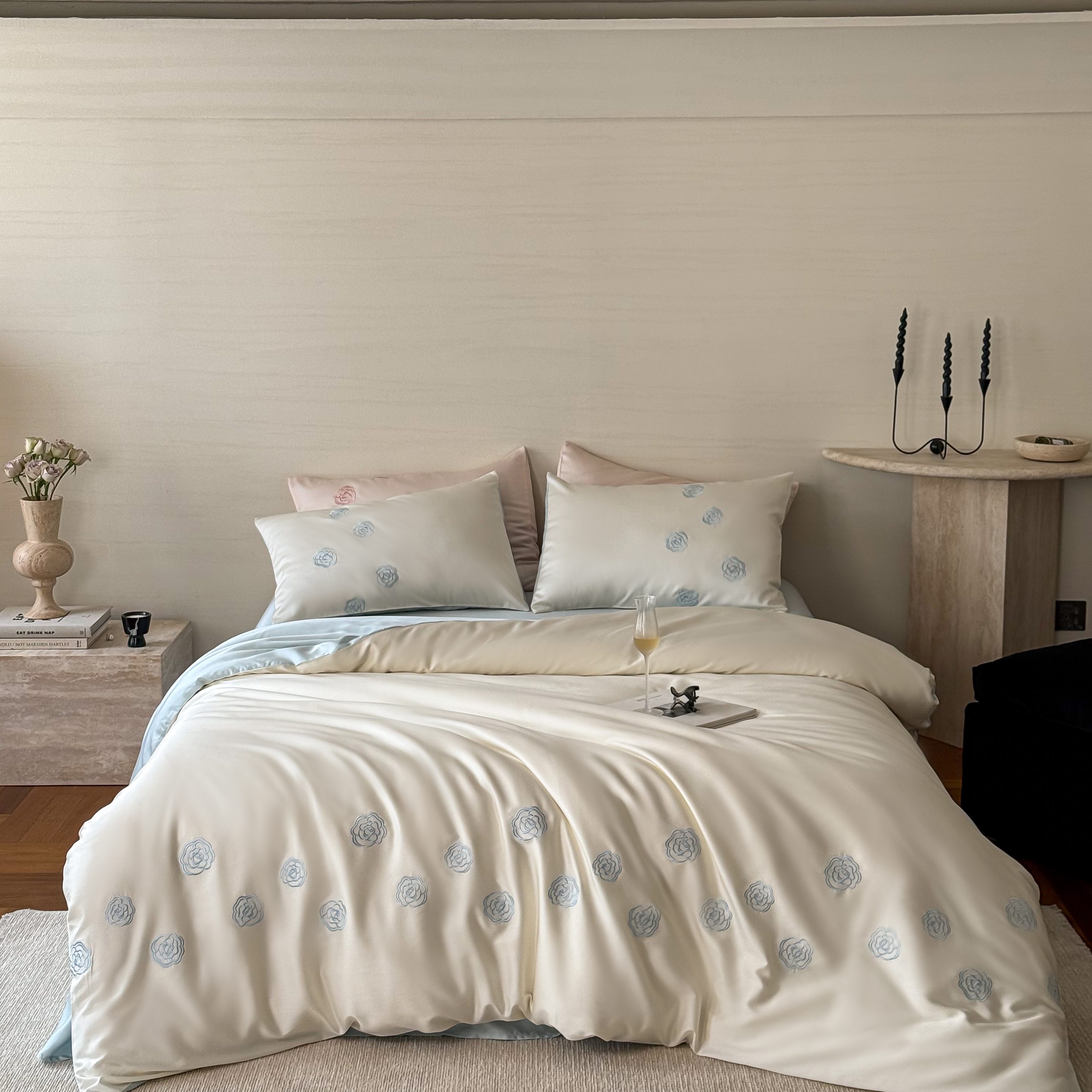商品名称:(总)佳汐蓝家纺 2025春夏新款60S兰精天丝绣花四件套-玉茗系列