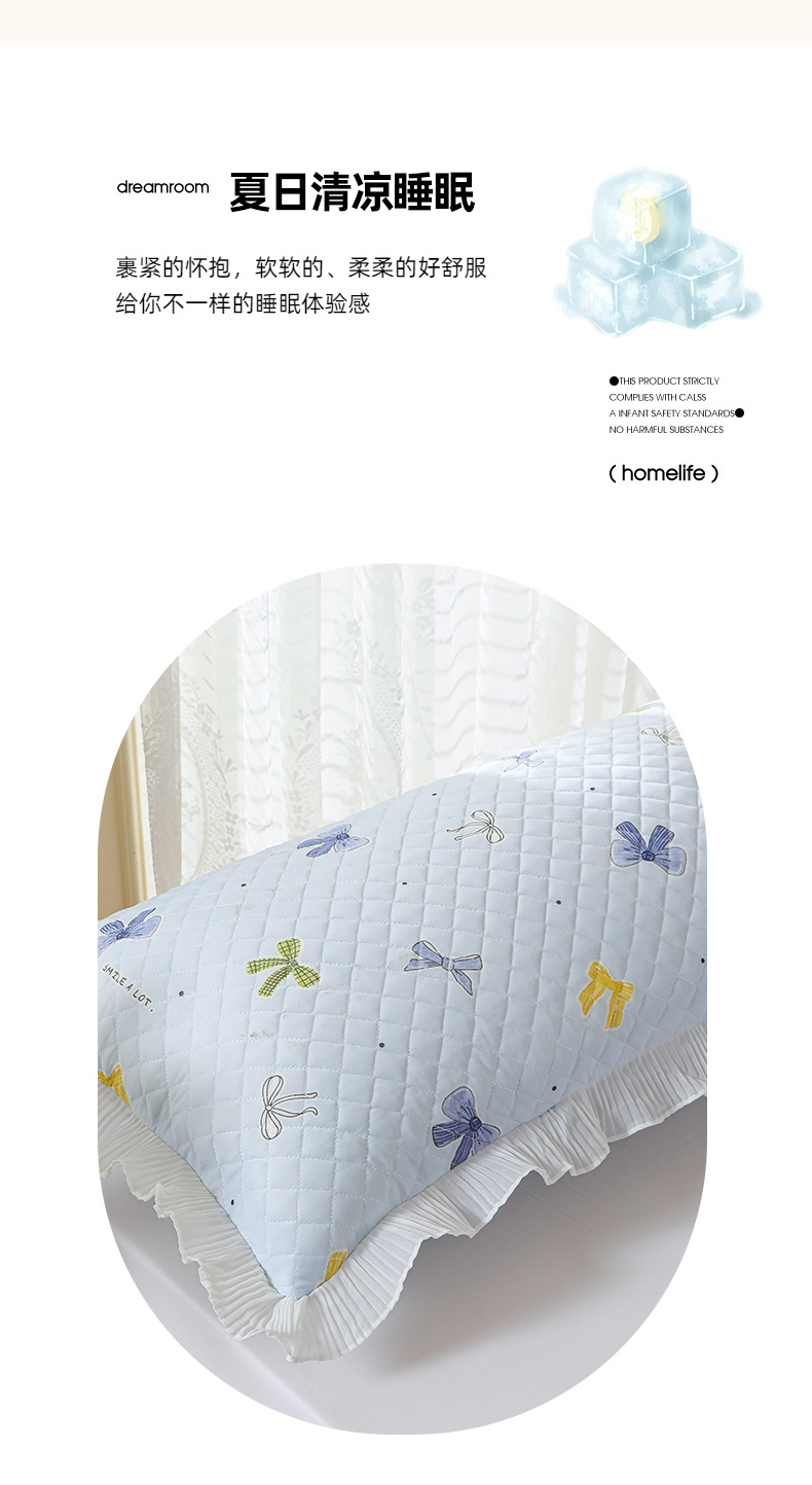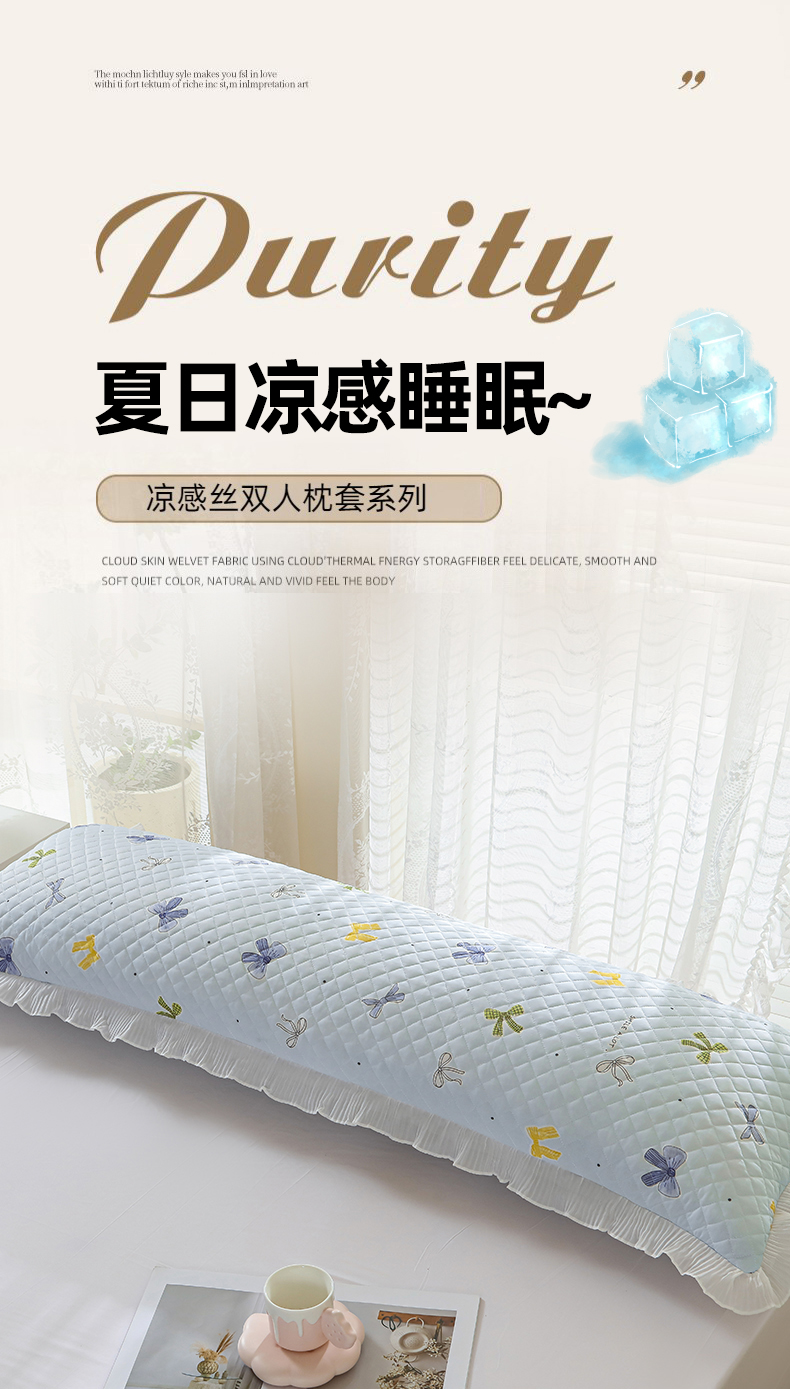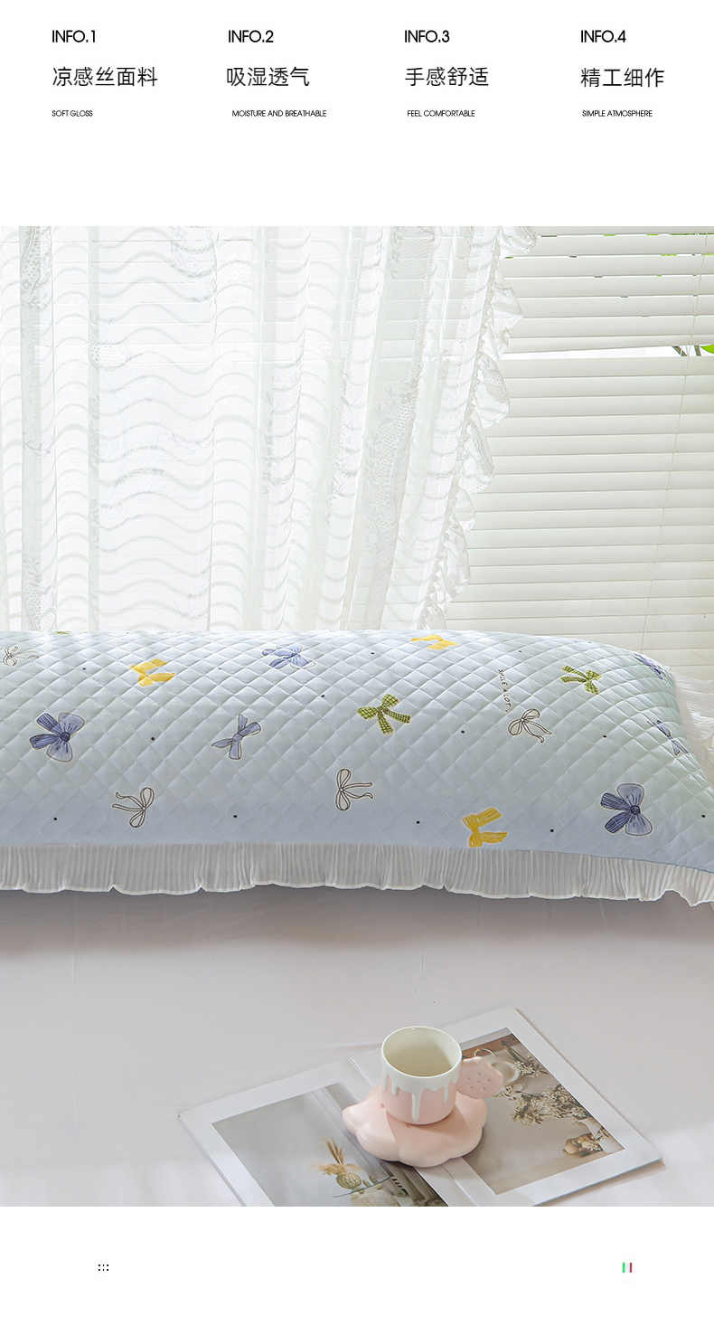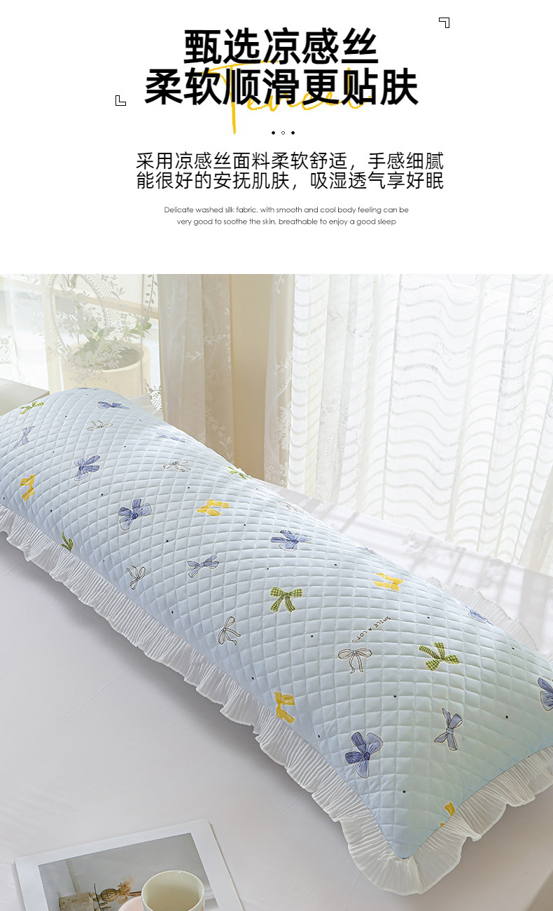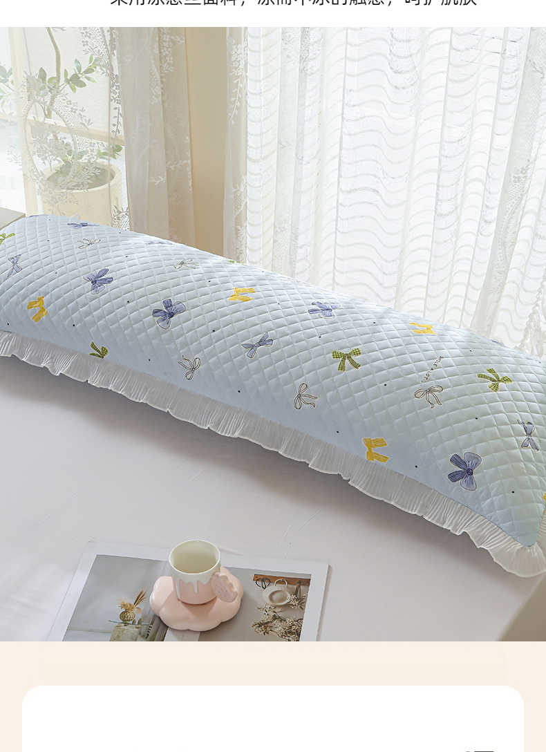 商品名称:美宜家 2025新款夏季凉感丝双人枕套花边情侣长枕套 蝴蝶结兰