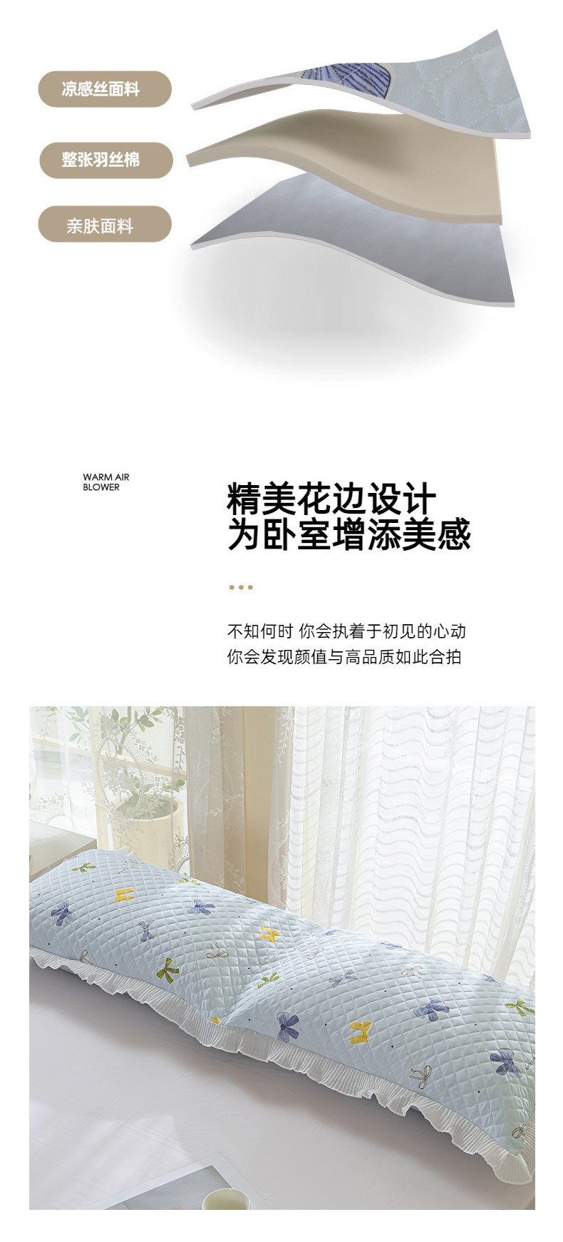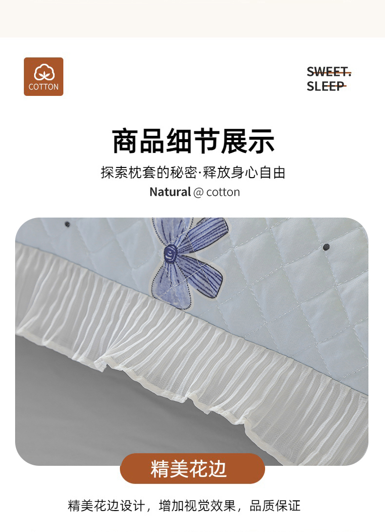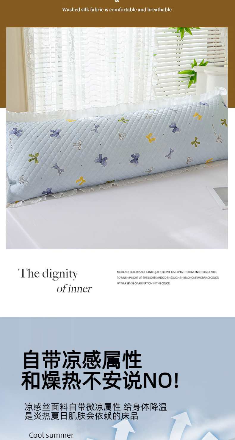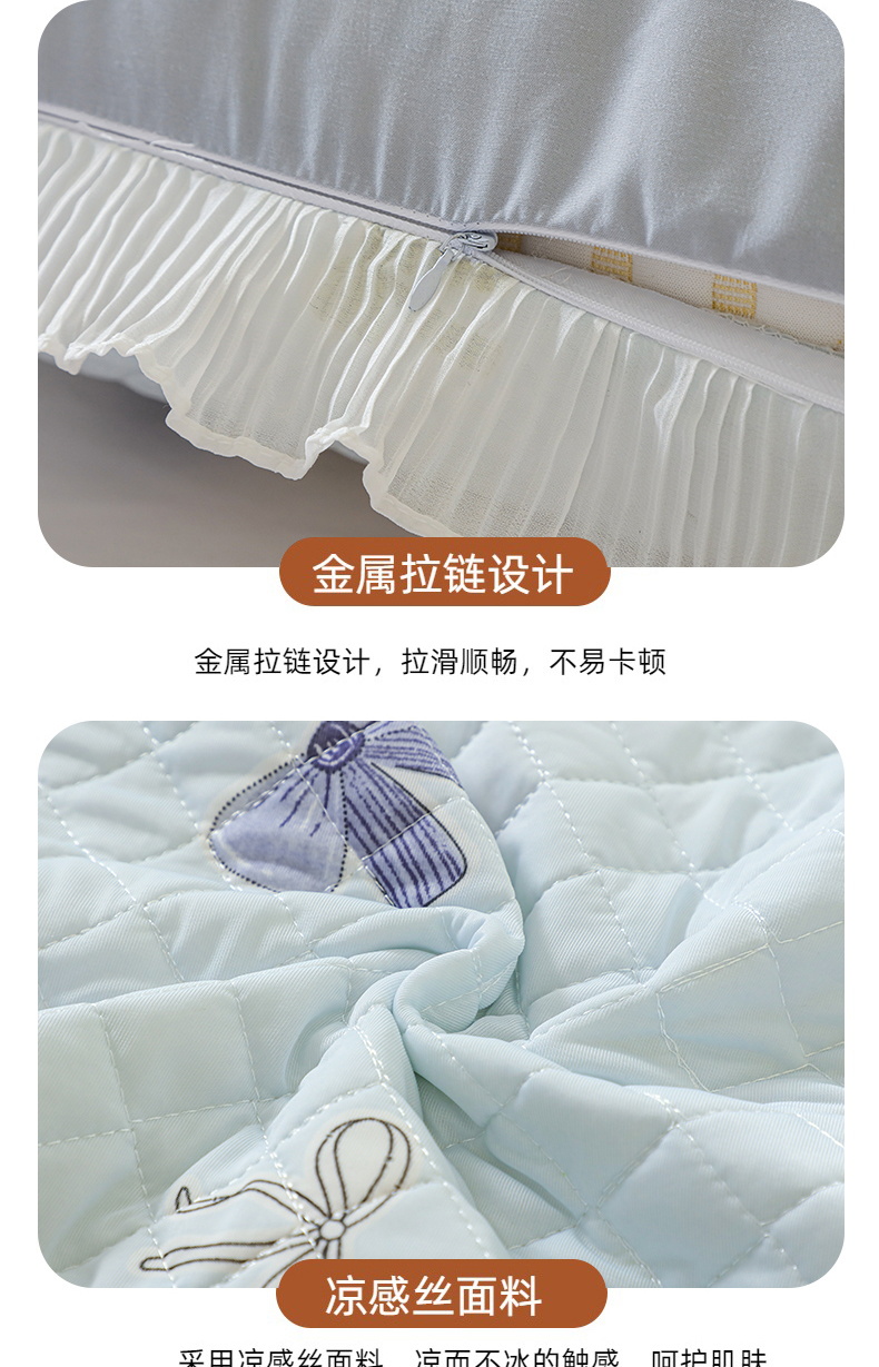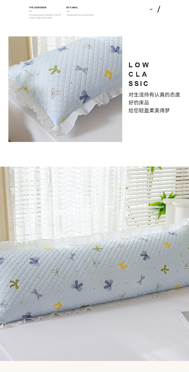 商品名称:美宜家 2025新款夏季凉感丝双人枕套花边情侣长枕套 蝴蝶结兰