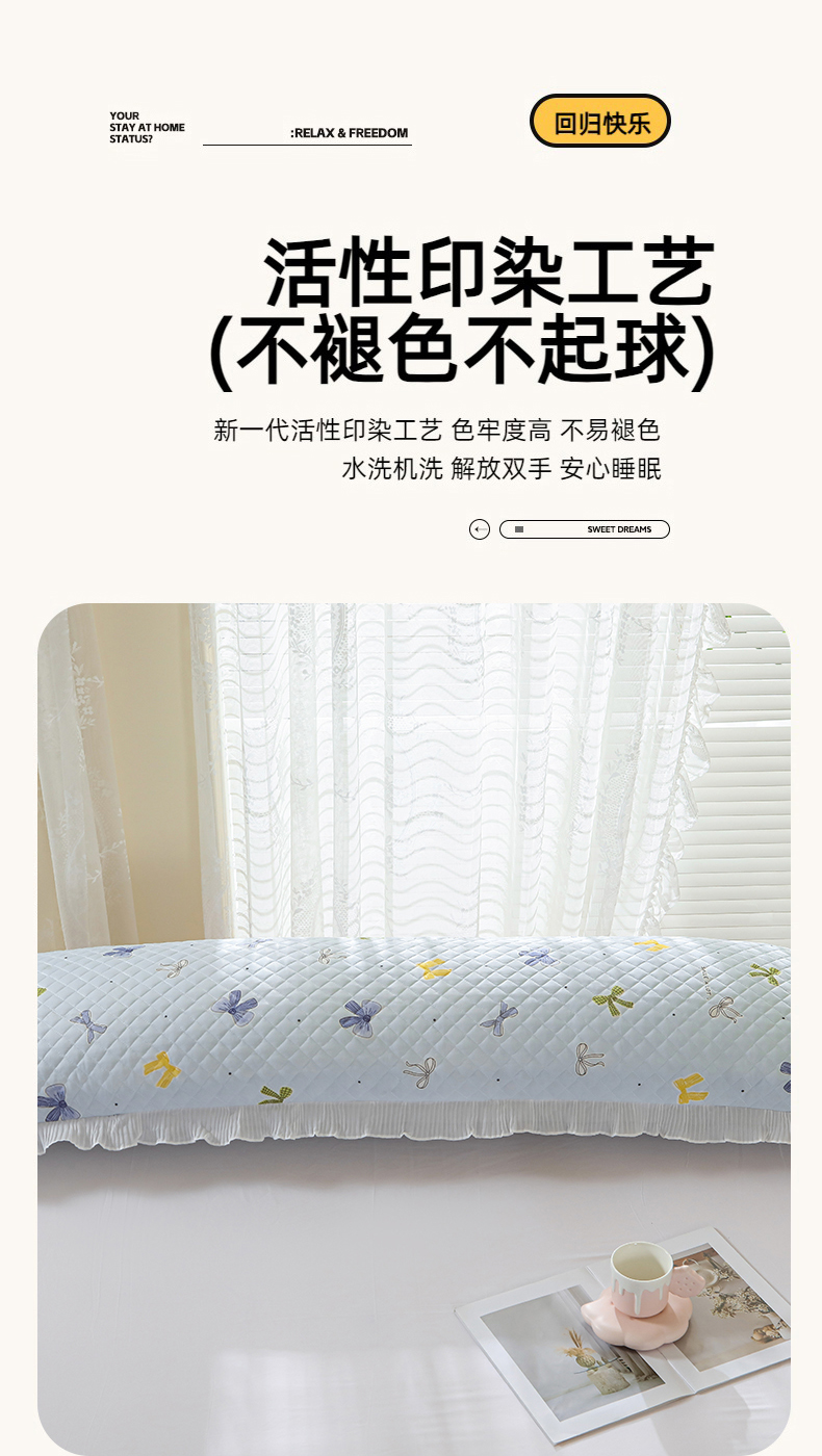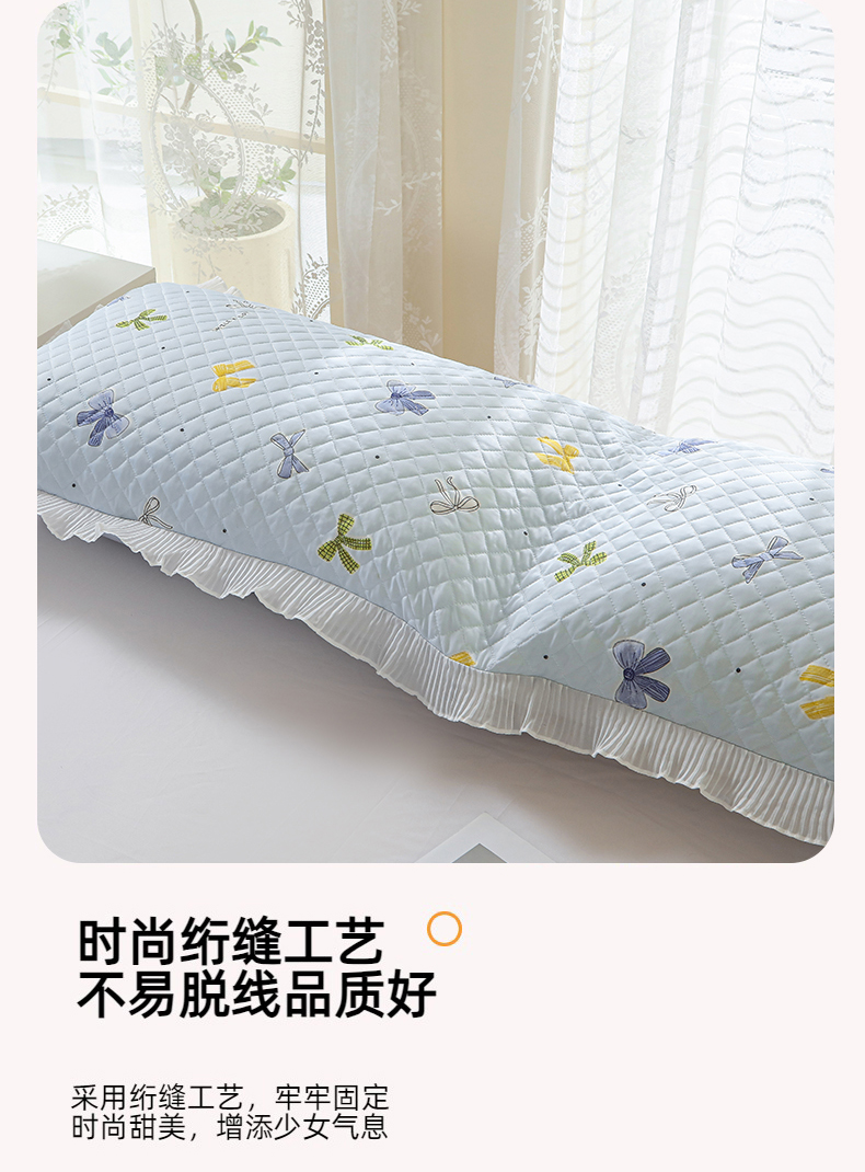 美宜家 2025新款夏季凉感丝双人枕套花边情侣长枕套 蝴蝶结兰