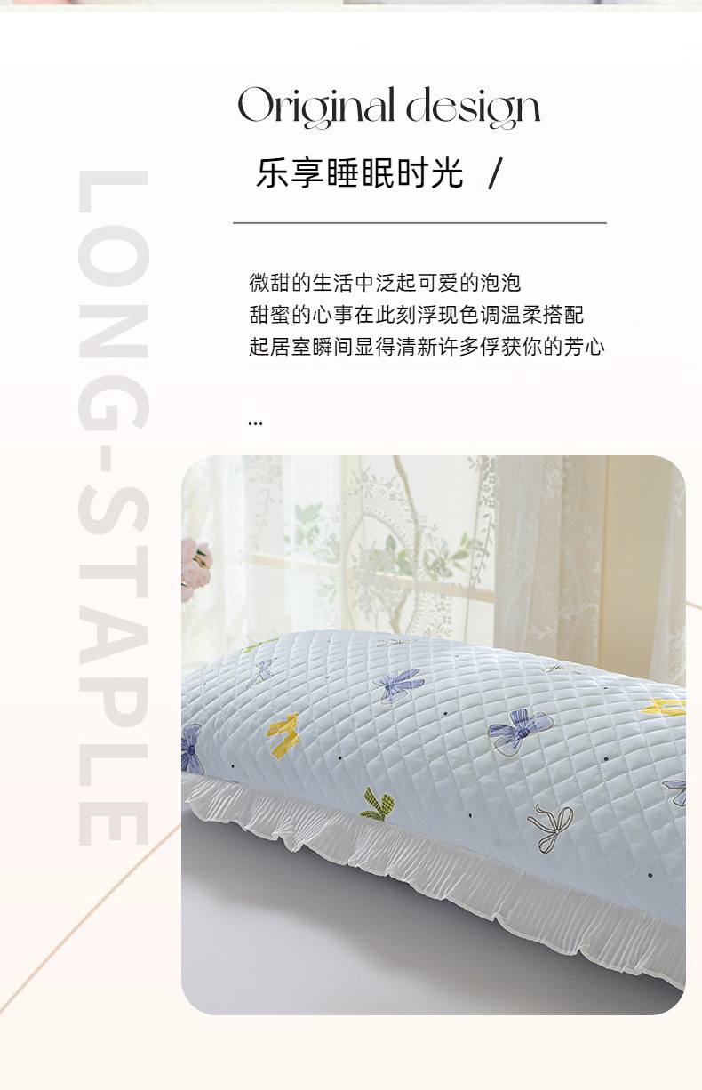 (总)美宜家 2026新款全棉枕头套高密色织水洗加棉绗缝高端纯色枕套,极简山灰,极简米其,极简兰灰,极简仔兰