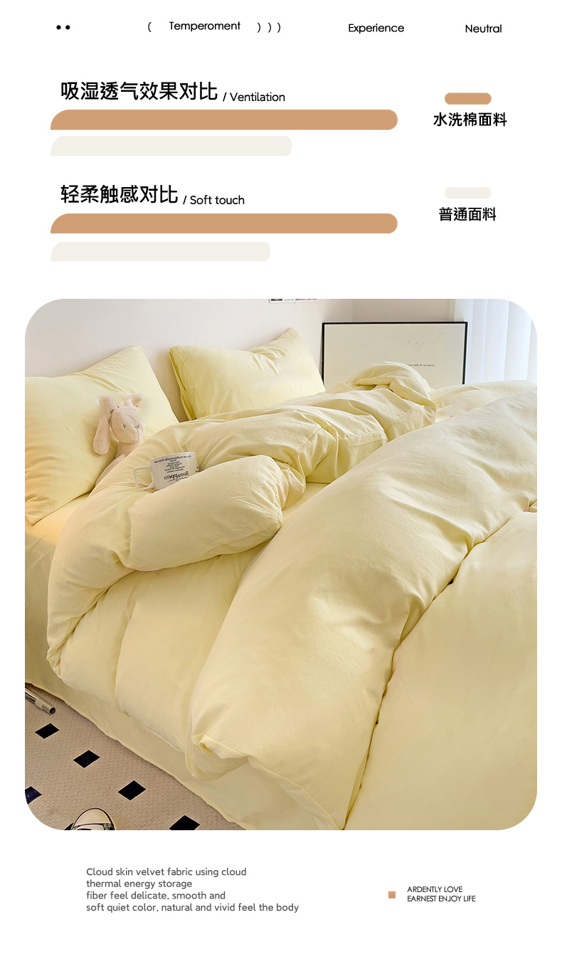 当前位置: 91家纺网 > 商品网购 > 床品套件 > 四件套 > 水洗棉四件套 > 艾特你 2025新款简约纯色水洗棉四件套 时尚简约-黄