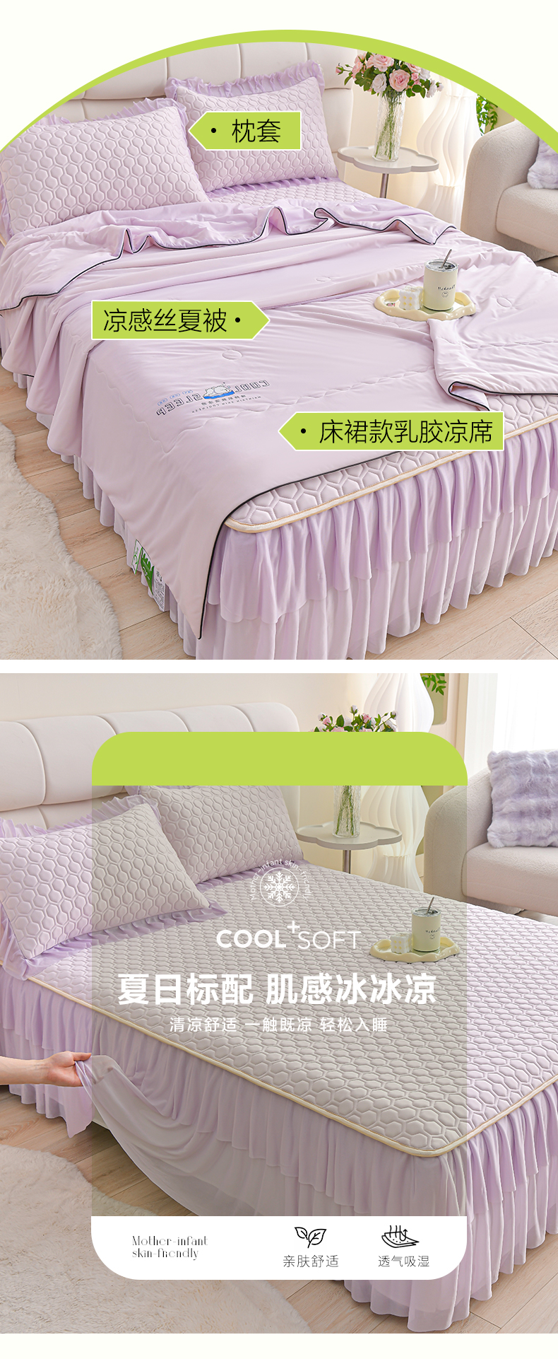 当前位置: 91家纺网 > 商品网购 > 床上用品 > 凉席 > 乳胶凉席 > 民新家纺 2025新款凉感丝床裙款乳胶凉席夏被四件套凉席三件套 足球花-魅紫