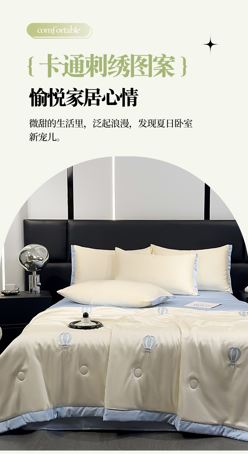 商品名称:(总)雨洋家纺 2025新款清凉舒适水洗冰丝刺绣夏被四件套 气球