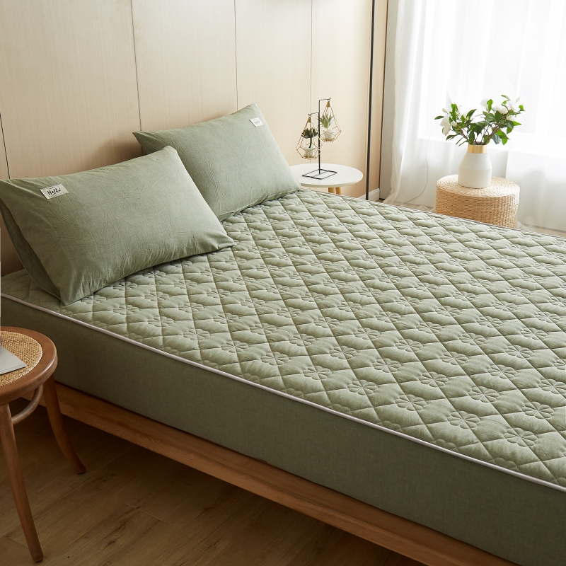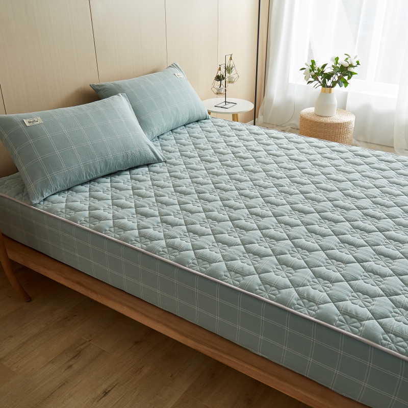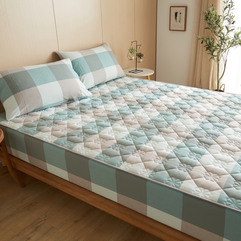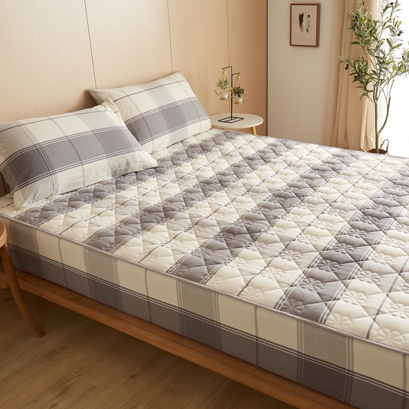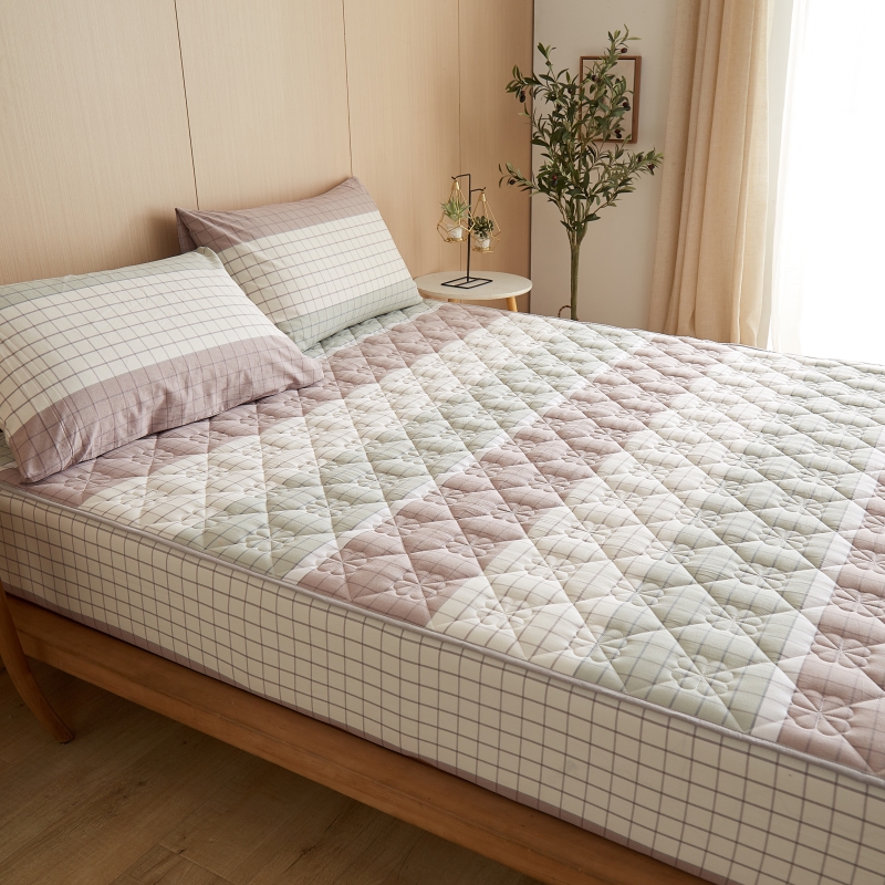 (总)优眠坊 2025新品日式无印风全棉色织水洗棉夹棉加厚抗菌纤维绗缝床笠,方格-卡其,方格-抹茶绿,方格-玉色,条纹-灰,条纹-卡其,条纹-清新绿,条纹-玉色