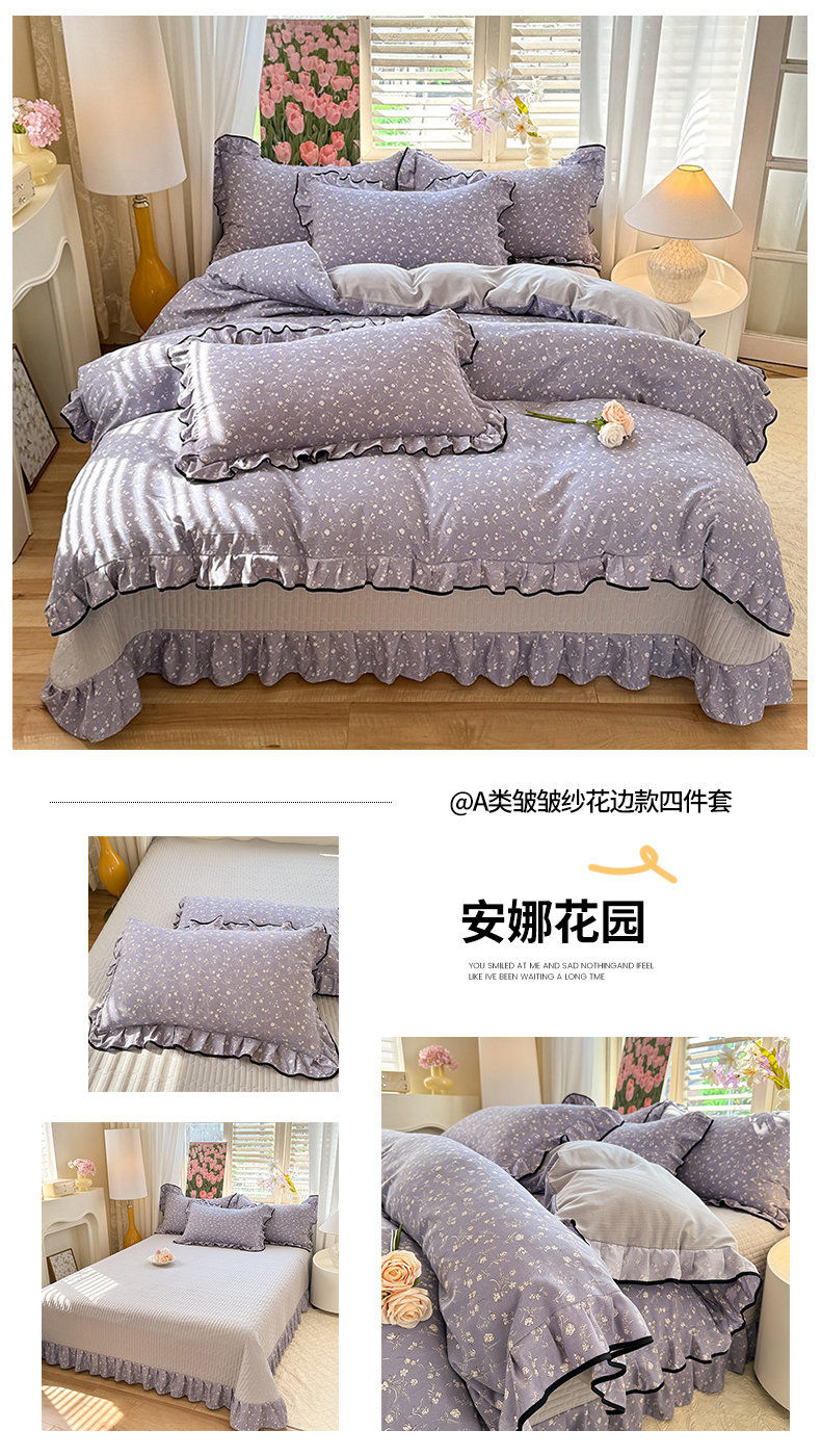 商品名称:韩约家纺 2025新款1皱皱纱时尚花边款四件套 安娜花园