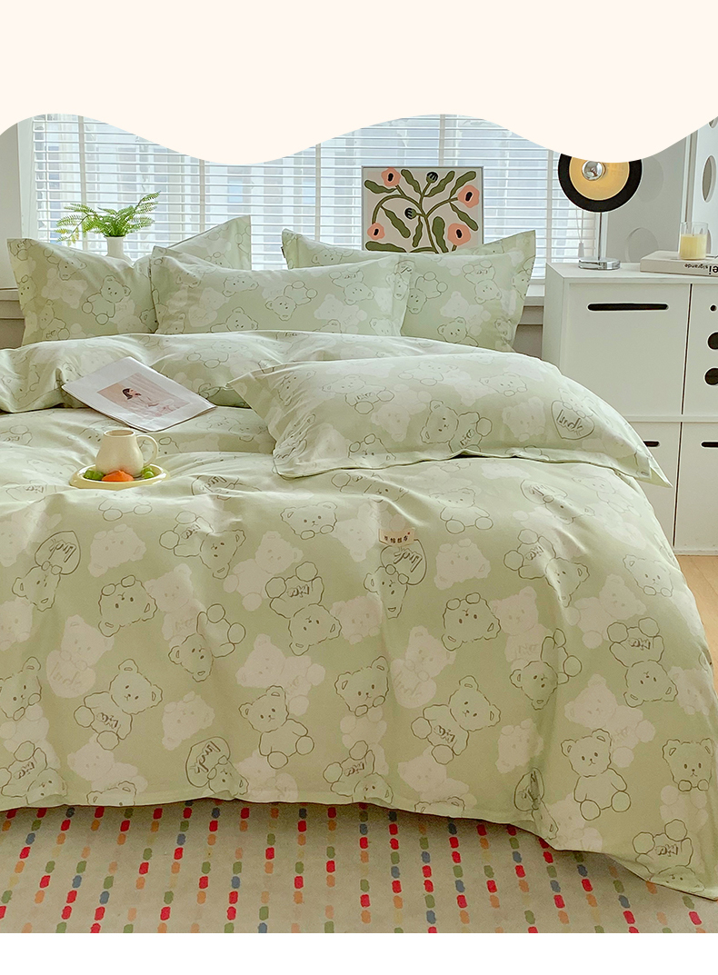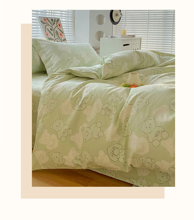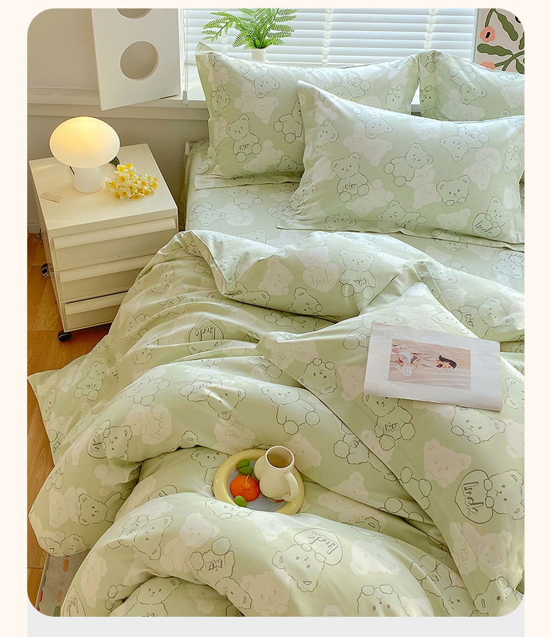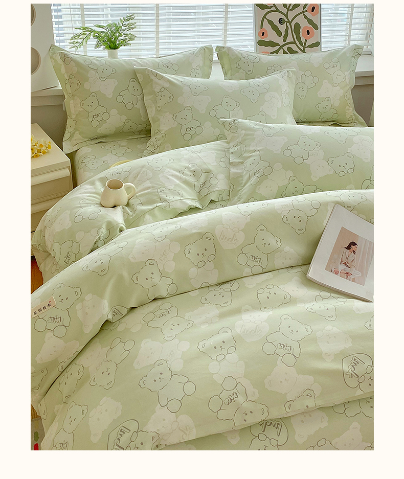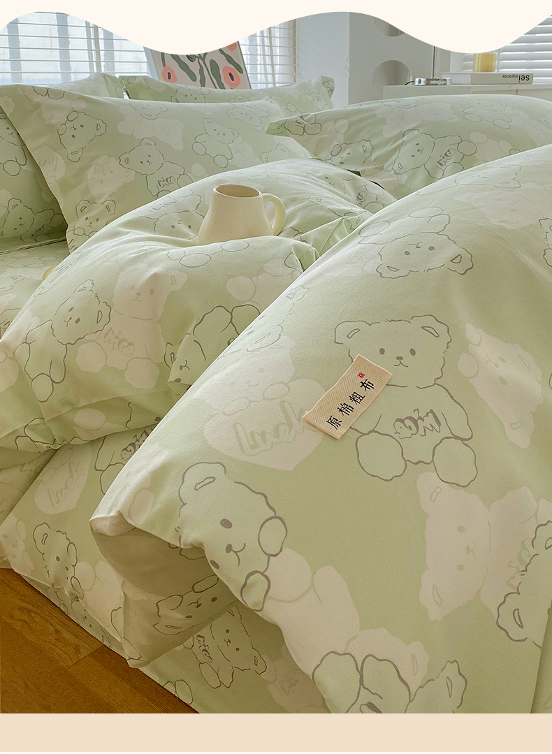 凯磊2025新款老粗布印花四件套 萌熊悠眠