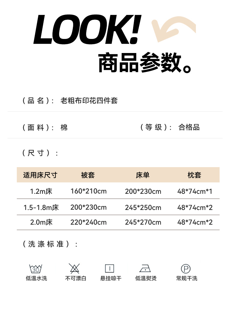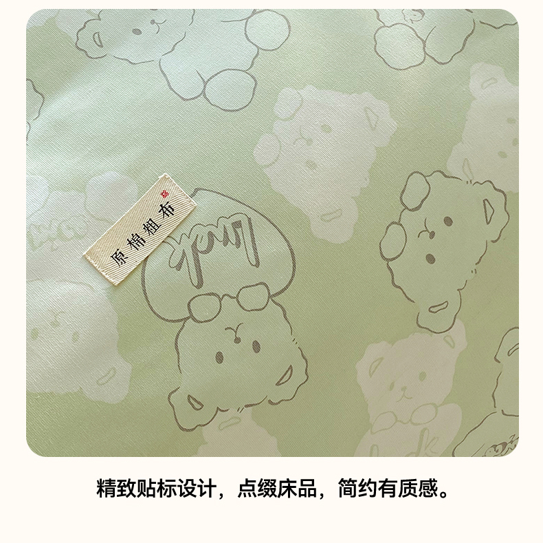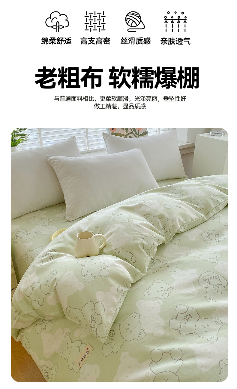 商品名称:凯磊2025新款老粗布印花四件套 萌熊悠眠