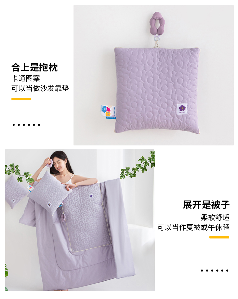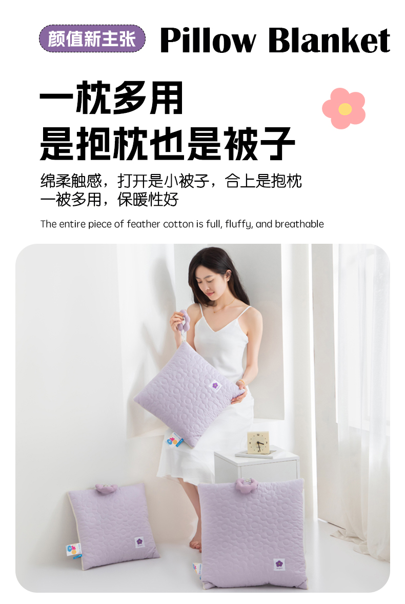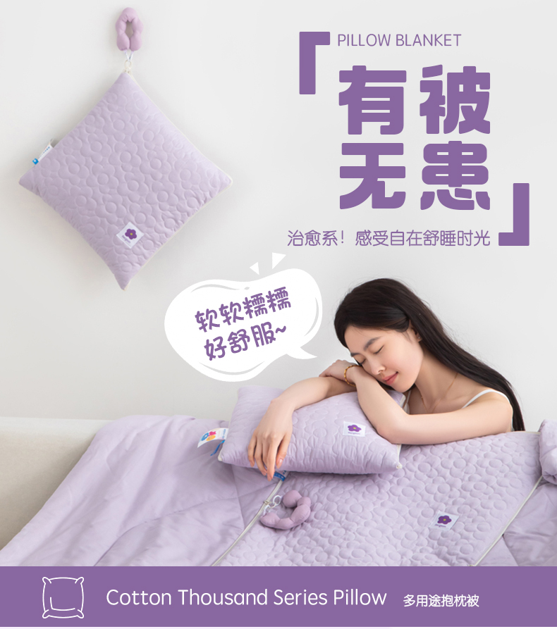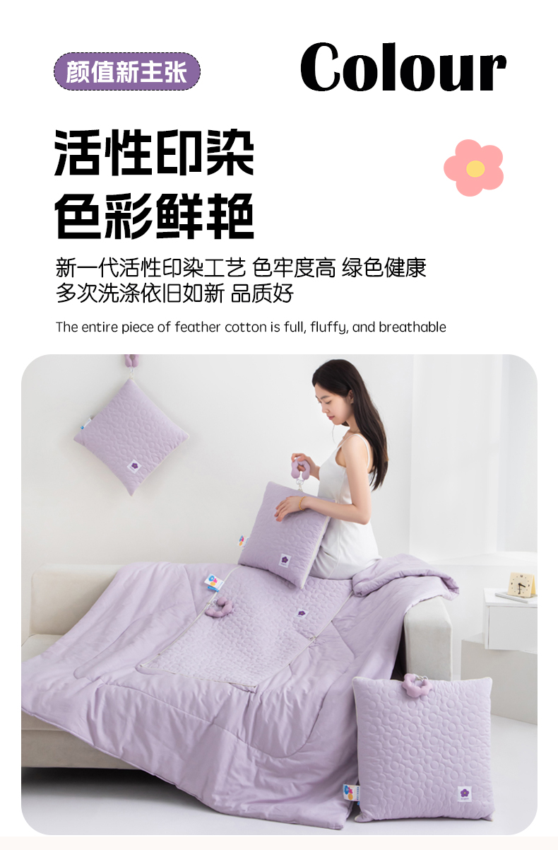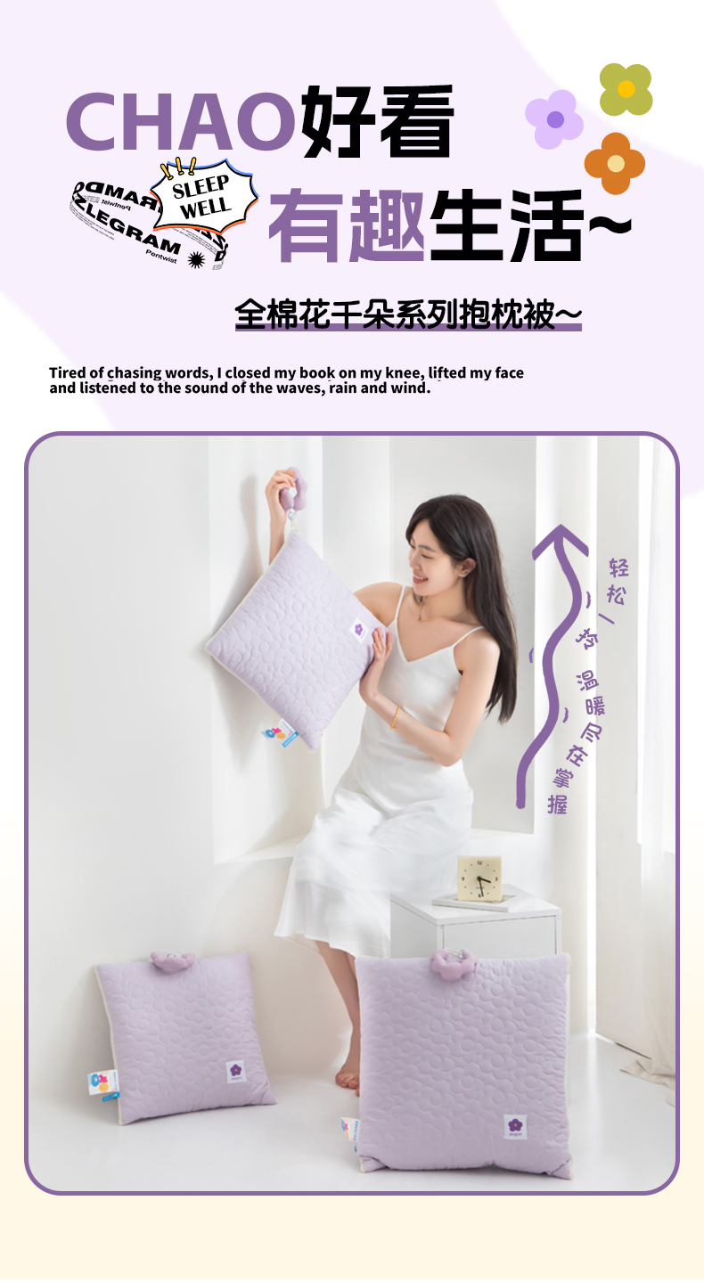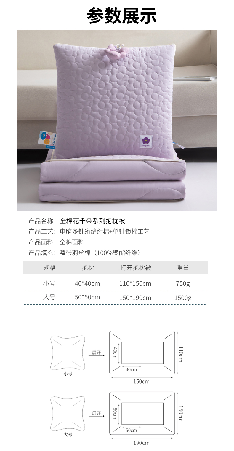 商品名称:雷娜家居 2025新款全棉花千朵系列抱枕被 温柔紫