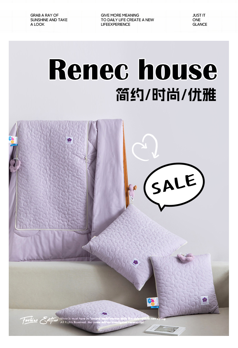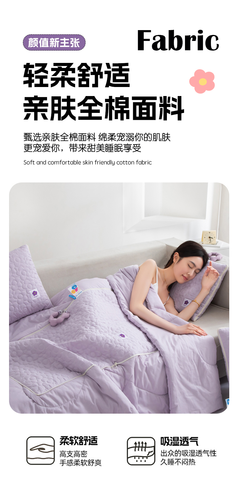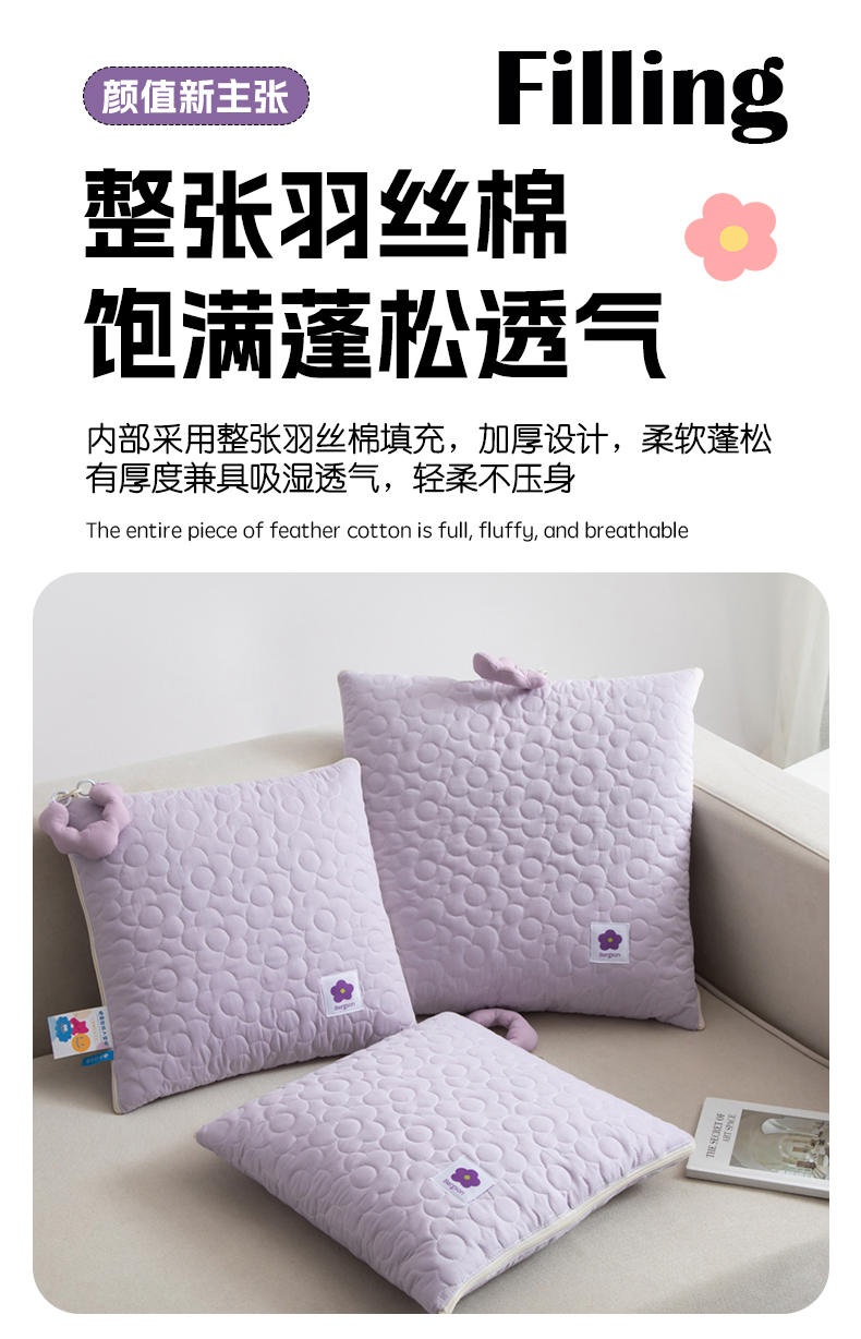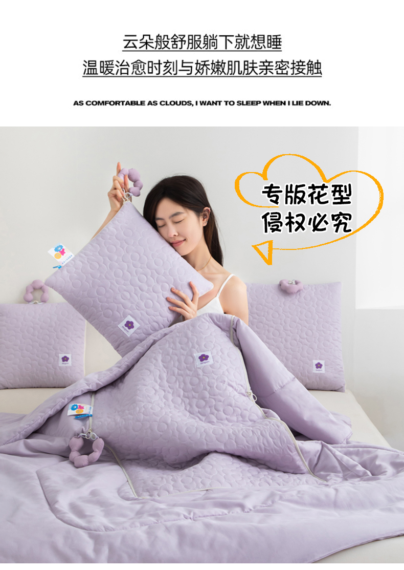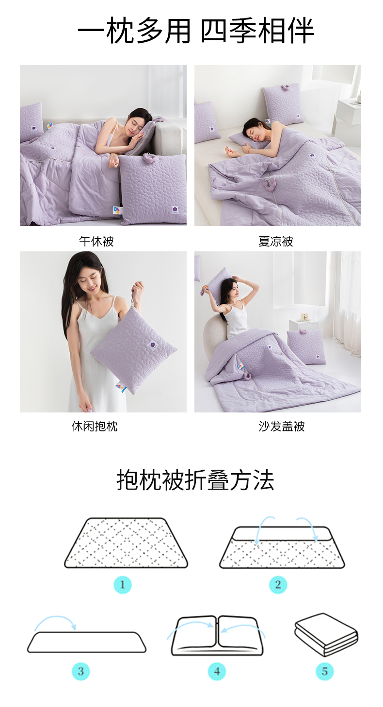 商品名称:雷娜家居 2025新款全棉花千朵系列抱枕被 温柔紫