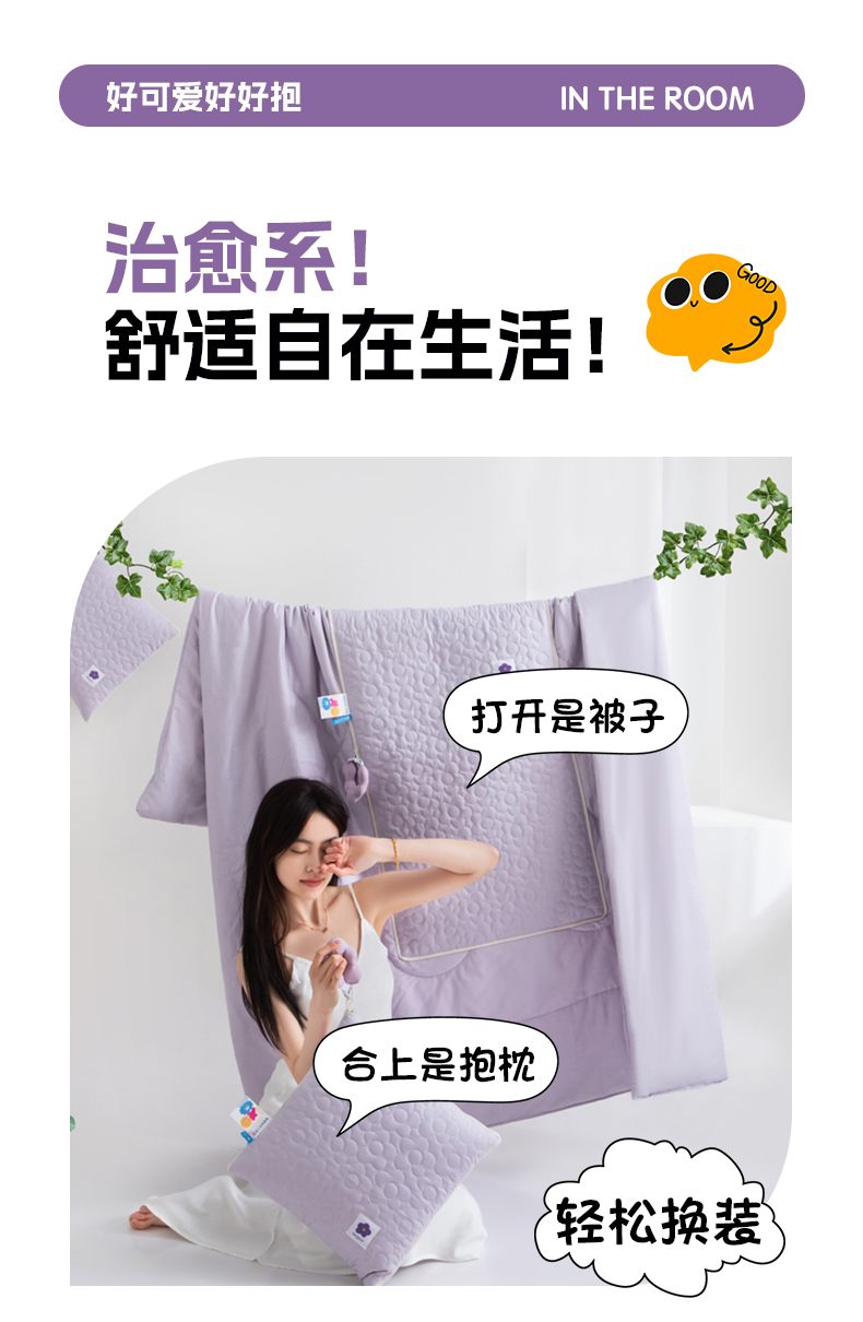 雷娜家居 2025新款全棉花千朵系列抱枕被 温柔紫