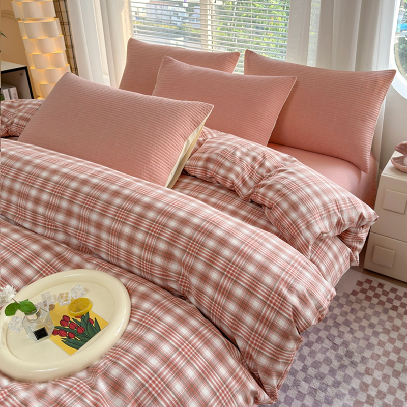 (总)梦精灵家纺 2025新款全棉纯棉色织水洗棉床盖四件套学生床宿舍被套床单枕套,可颂-咖,利奥-红,利奥-蓝,利奥-绿,罗恩-灰,维多利亚-米,西蒙-黄,西蒙-蓝,左岸-粉,雅灰,棕咖,鹅黄,幻影绿,桔红