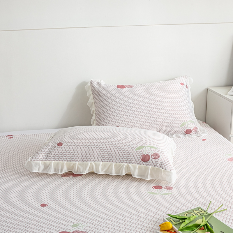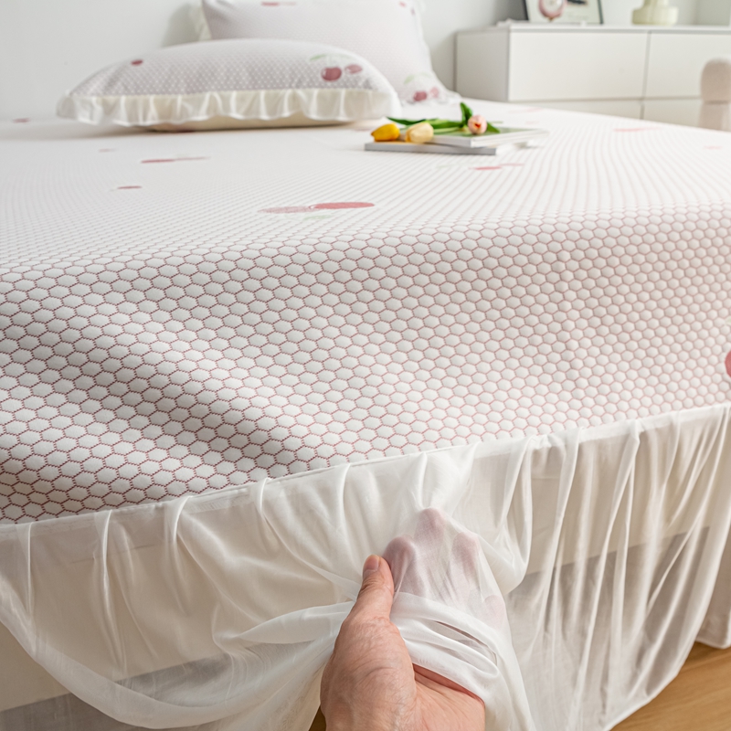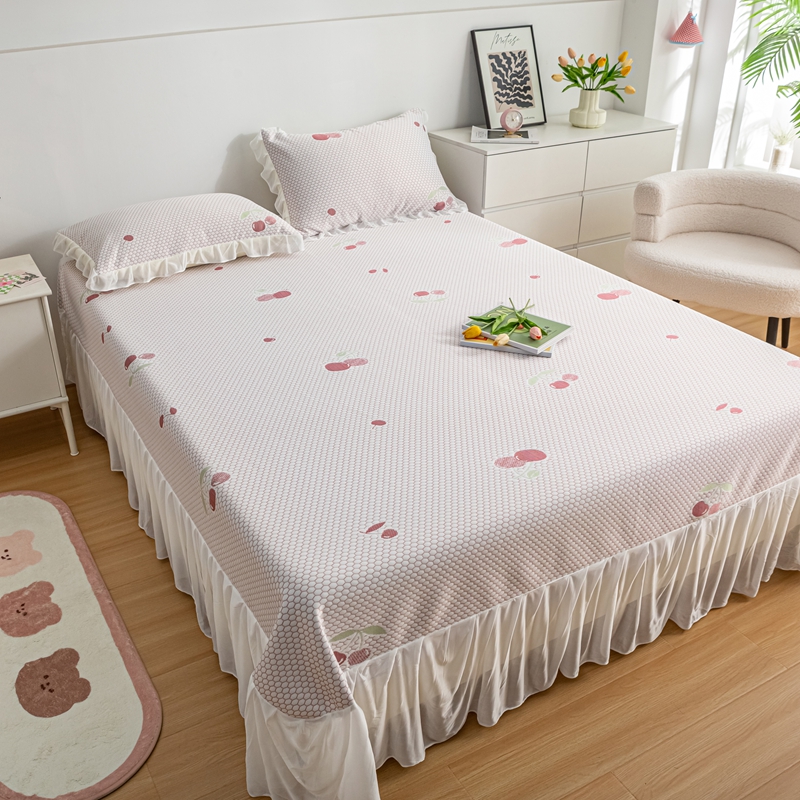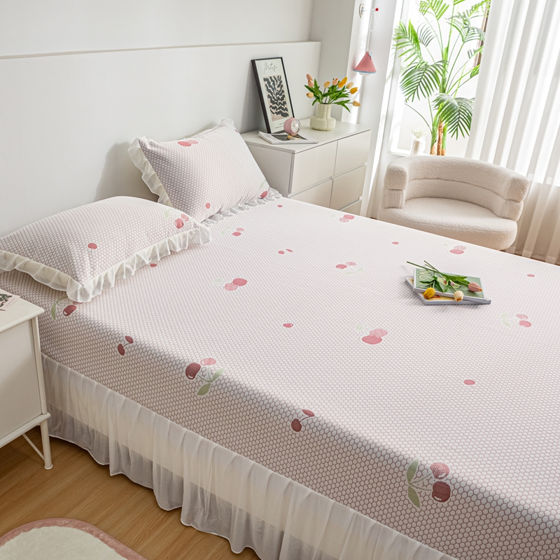 商品名称:春寻家纺 2025新款凉豆豆冰丝凉席席子-床裙款 小樱桃