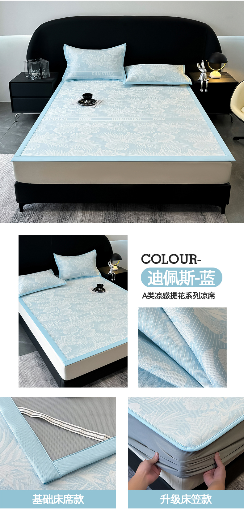 当前位置: 91家纺网 > 商品网购 > 床上用品 > 凉席 > 懒猫家纺 2025春夏新款PE凉感提花床席款床笠款凉席 迪佩斯-蓝 床笠款