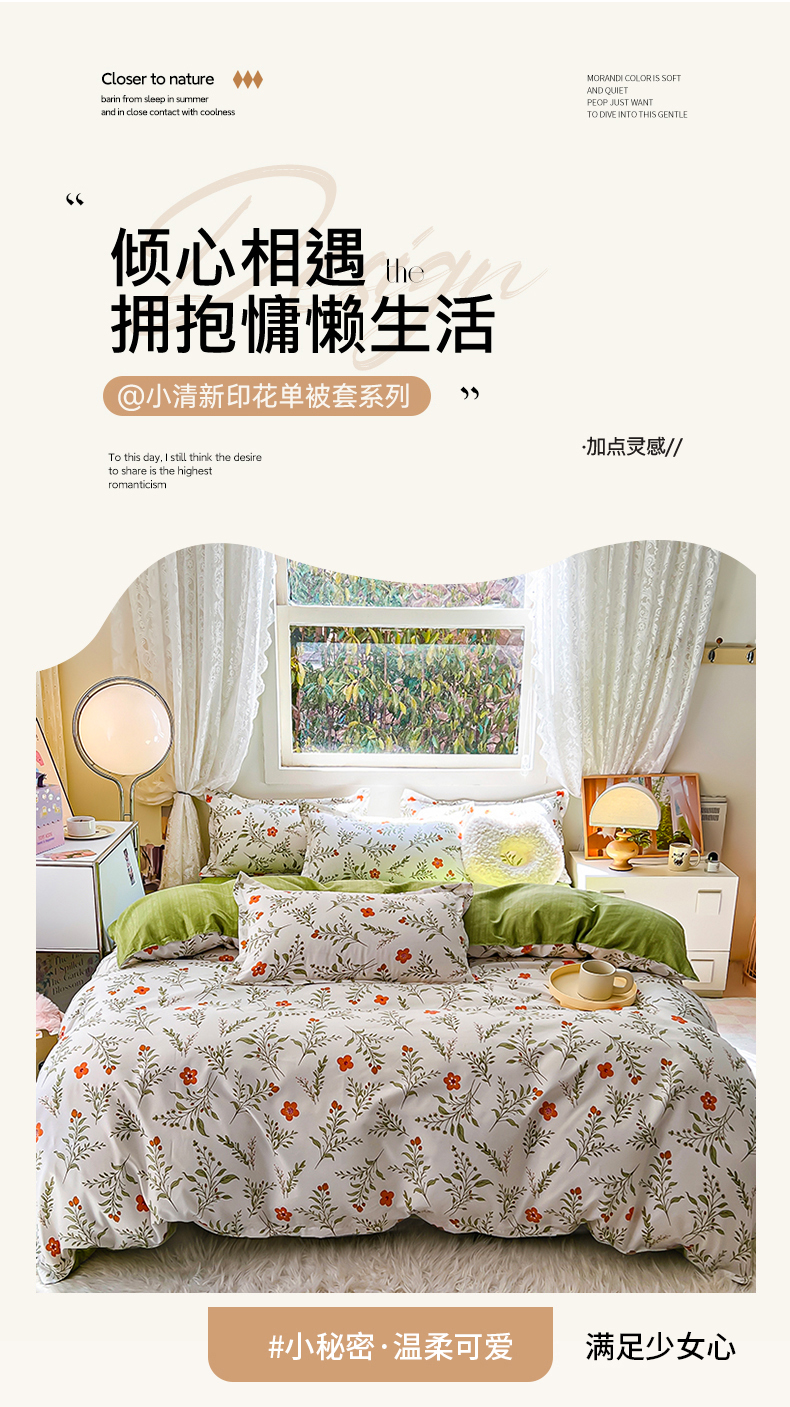 (总)曼璐家纺 2025新款小清新芦荟棉印花四件套,朝花夕拾,初夏,可可西里,喵星人,叶雨,初夏
